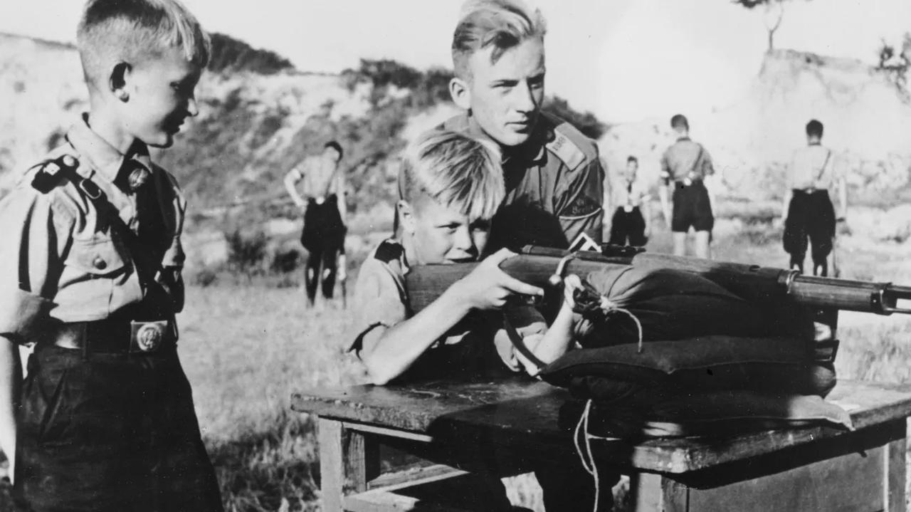 [捂脸] 10岁的狙击手——1944年,美军宪兵正在审讯两名被俘的德国少年狙击手——其中一个14岁,名叫维利·埃申贝格;另一个年仅10岁,名叫胡贝特·海因里希斯。少年们向美国大兵坦白,他们是从“希特勒青年团”那里接受的狙击训练(参见图2)。 “希特勒青年团”是第三帝国在1922年成立的准军事化青少年组织,至1939年强制要求所有10-18岁德国青少年加入,1944年战争末期该组织成员被大量投入本土防御作战。 [捂脸] 不过,他们真的能指望10岁的孩子能打中什么人吗?
