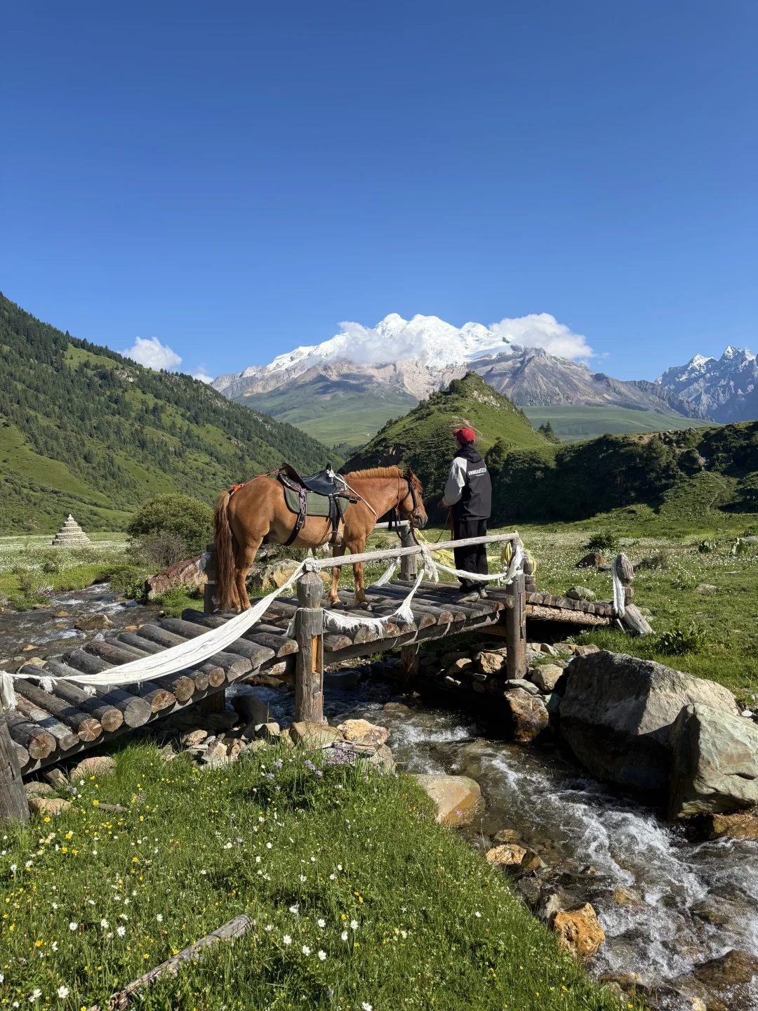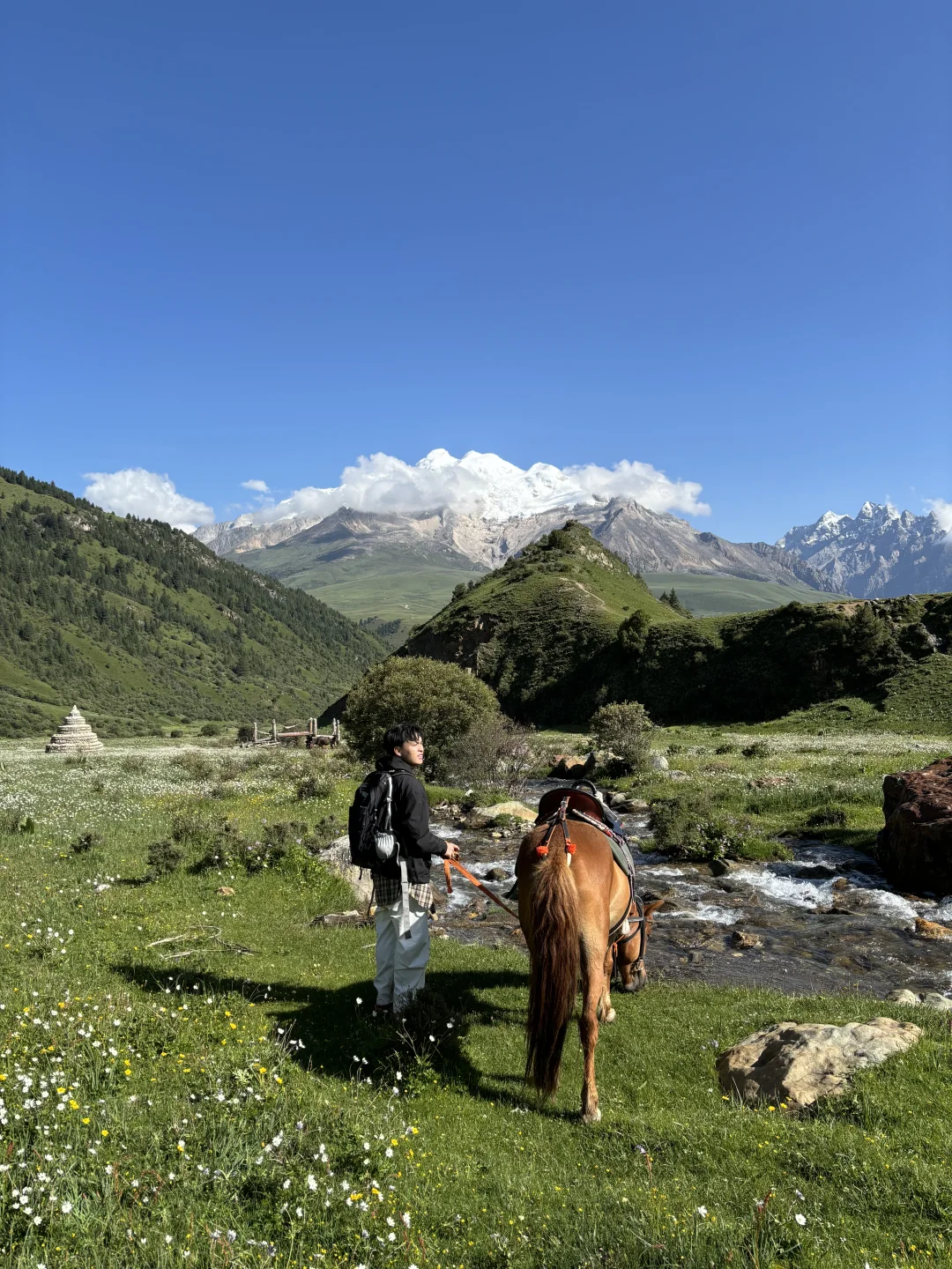 分享一下这次我来川西最喜欢的无人秘境 小溪、野花、雪山、村庄 真的有瑞士的的感觉 骑着本地小马探索秘境中的场景,真的此生难忘 - 这是格聂南线则巴村后山秘境,可以徒步也可骑马,建议骑马来回➕游玩1-2小时150。因为没啥游客这边花海更有生命力更美,还会遇到土拨鼠。徒步的话30/分钟就能抵达。 -