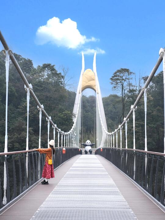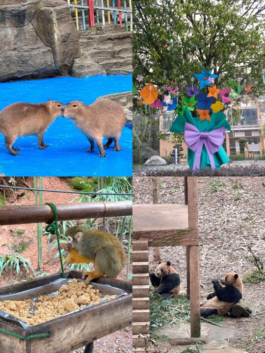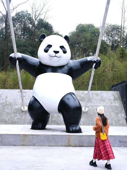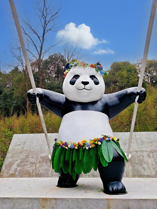 2)和大熊猫🐼合影,假装走动抓拍更自然,现在大熊猫雕塑还穿上了花环和花裙!快去打卡吧!