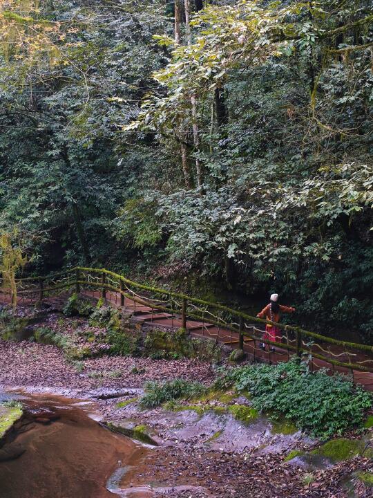 让你的朋友站在栈道对面,隔着溪流构图,轻松徒步感拿捏🫴