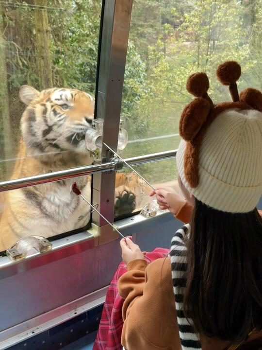 1)坐上投食车可以投喂老虎🐅熊🐻和狮子