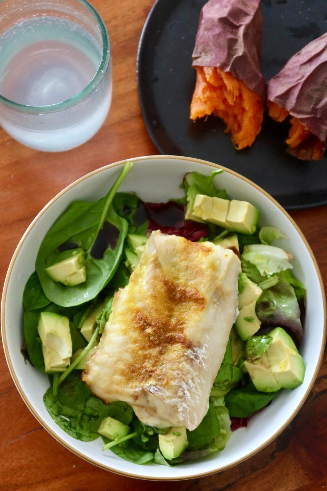 午餐:烤红薯🍠、烤野生大西洋鳕鱼牛油果🥑沙拉🥗,鱼解冻了低温320F差不多8-10分钟就行,烤的时候撒点姜黄蒜粉海盐初榨橄榄油