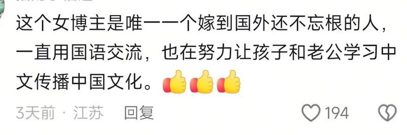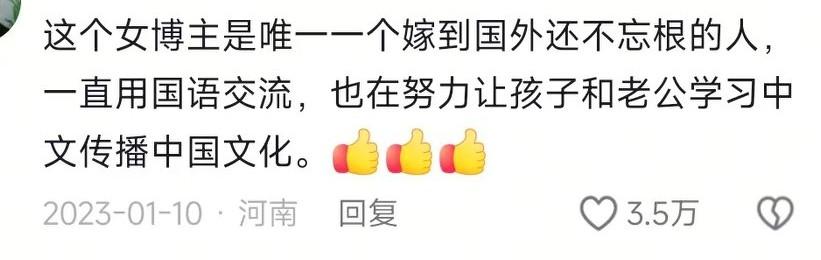 这个博主网名“小黄远嫁美国”,是粉丝量超500万的网红,嫁给一个毕业于普林斯顿大学的美国男子(他们有期作品就是回去参加校友会),生了一对混血儿女。 她的漂亮混血女儿叫君君,小黄的短视频里有很多内容都在拍她。 在网上刷到君君做出这个“眯眯眼”的动作还是很震惊,她们娘俩不应该不知道这是有辱华倾向的招牌动作吧! 靠着在某音平台拍日常卖货,小黄一家生活水准已经大幅提升,一家四口夏天时还全家坐商务舱回国。 更有意思的是,在她不同时期的作品下面评论区都能看到不同网友留下的同一话术,说她“嫁到国外不忘根”。 女儿开心做眯眯眼,老母亲喜滋滋拍视频,这能叫“不忘根”吗?!