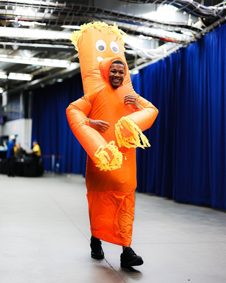 由于当地时间是万圣节前夜,三名新秀也是穿上了高定!扬布拉德说他的服装是杰伦的点子!