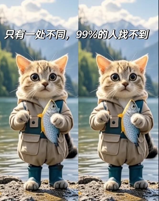 小猫捉鱼,两边只有一处不同 你能快速找出来吗?