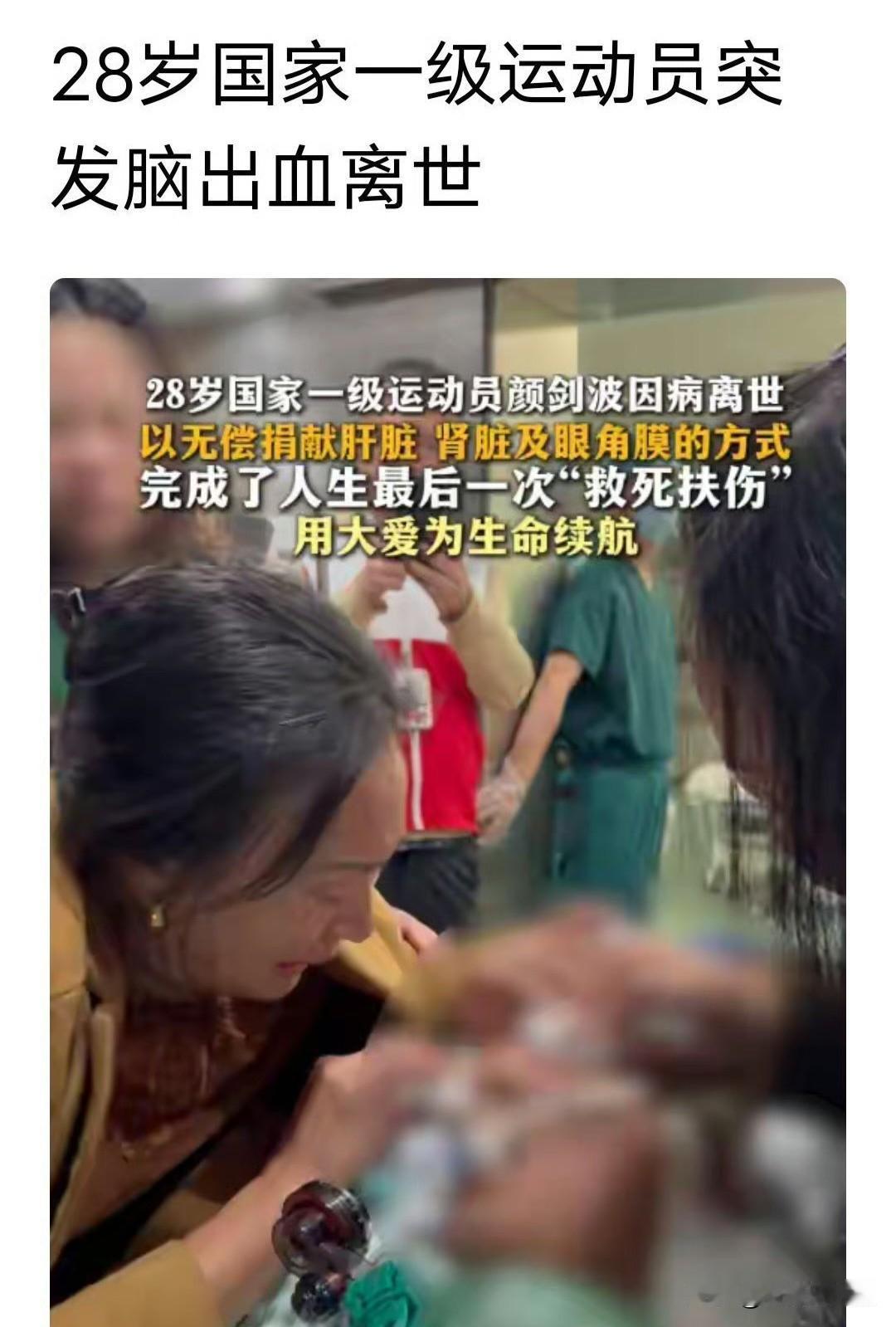 看到那个28岁的摔跤冠军静静地躺在医院里,他妈妈扑过去一遍遍喊我的崽。 他叫颜剑波,是国家一级运动员,身体壮得像头牛,却突然就脑出血走了。以前训练时肋骨骨折、肩膀脱臼,他从来不对家里吭声,总觉得孩子挺能扛。 他爸红着眼睛说,这么优秀的孩子,不能白白走了。他们决定把能用的器官全捐出去,两个肾、一个肝、一对角膜,最少能救五个人。 他妈陪读了十几年,儿子退役后在长沙刚创业,生活才起步。她总记得儿子回家先给她一个拥抱,抢着下厨帮忙。现在她接受不了,一边给儿子擦眼睛,一边觉得这辈子塌了。 他爸说得实在,搞训练的器官比一般人好点,能留一点是一点。 以前觉得脑出血是老人家才碰上的病,现在不年轻了。血压高不注意,熬夜应酬,血管说破就破。 颜剑波自己也不知道有高血压,等倒下就来不及了。 签捐献表那天,他妈跑出去大哭一场。后来她想通了,只要儿子的一部分还在别人身体里跳,就感觉他没走远。 最后医生取器官时,他爸喃喃道,能用的全捐了,算是给他留个念想。 那些接受他器官的人,大概正开始新的生活。而这位摔跤冠军的最后一场比赛,名字叫活着。