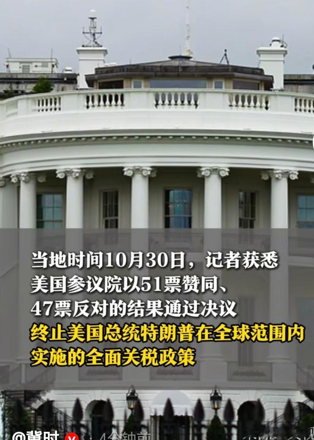 参议院通过终止决议,特朗普关税政策暂难撼动 当地时间10月30日,美国参议院