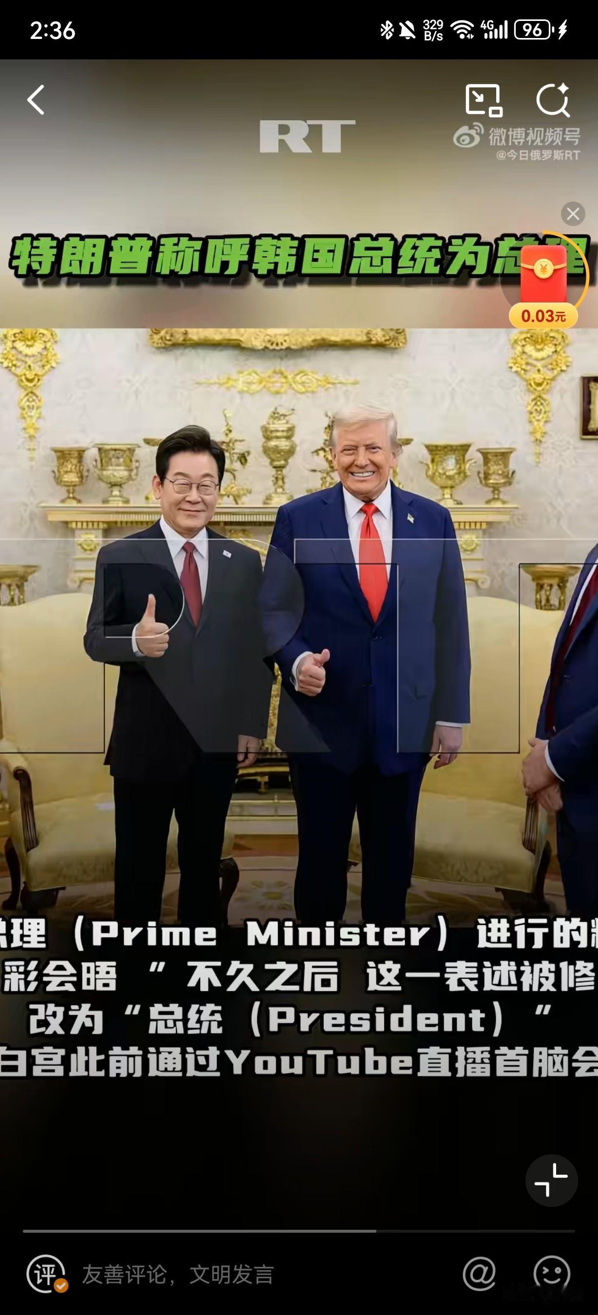 “加冕”了新罗王冠,特朗普转脸就称李在明总统为总理……特朗普于10月30日凌晨在自己的社交平台“真相社交”上发文,提及前一天在庆州举行的韩美首脑会谈时写道:“这是一场与一位伟大的总理(Prime Minister)进行的精彩会晤。”不久之后,这一表述被修改为“总统(President)”。 白宫此前通过YouTube直播首脑会谈时,也曾错误地将李在明标注为“总理”。 韩媒指出,在首脑会谈刚结束后就误写对方国家元首的职务,已经超出了普通笔误的范畴,可能被视为一种外交失礼。