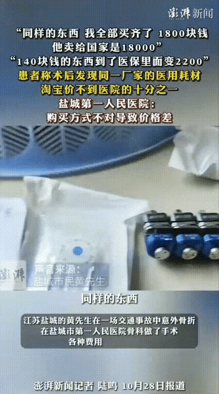 2024年,江苏盐城icon,一男子到医院进行腿部骨折手术,术后无聊逛淘宝时发现医院给自己用的耗材在网上也有卖,于是男子上网查了下直接气愤的不行! 这一问不要紧差点把黄先生气得伤口都要崩开了,同样的厂家同样的型号规格,同样的订货编码,整套外固定支架在销售公司那里只要1800元,您没看错医院收费是网上价格的十倍还多。 这到底是怎么回事?难道医院在“赚差价”吗?还是说,这背后隐藏着我们看不见的利益链条?黄先生的愤怒,或许只是千万患者心中那一丝不安的缩影。我们习惯了医院的“神秘面纱”,觉得那些收费或许合理、或许合理之外,但当真相逐渐浮出水面时,谁还能无动于衷? 想象一下,一个普通人刚刚经历了骨折的痛苦,手术的折磨还未散去,就被“价格差异”狠狠刺了一刀。医院用的耗材,竟然在网上随意可以买到,价格竟然只有医院收费的十分之一!这背后,难道没有点我们不知道的秘密?难道不是某种“潜规则”在暗中操控着?如果说,医院的收费是“合理利润”,那么,为什么在市场上,同样的产品价格却天差地别?难道医院在“帮”我们赚取“差价”? 更令人震惊的是,这一幕,绝非个例。近年来,关于医疗“灰色地带”的报道层出不穷:一些医疗机构为了追逐利益,偷偷在耗材、药品上“加价”;一些供应商利用医院的采购渠道,赚取巨额差价。而患者,似乎成了无声的“牺牲品”。我们难道要继续忍受“看不见的剥削”吗?难道就没有人站出来问问:这合理吗?这公平吗? 有人说,医疗行业本身就复杂,涉及到供应链、质量保障、责任归属,但这绝不能成为掩盖不公的借口。我们需要的,是透明和公平。我们需要的,是医院和供应商之间的“阳光操作”。毕竟,谁都不愿意成为被“剥削”的那一方,尤其是在自己最需要帮助的时候。 这件事情,或许只是冰山一角,但它折射出的,是整个医疗行业亟需改革的痛点。我们不能只做“旁观者”,更不能让“利益链”继续盘踞在我们的健康和权益之上。每一个普通人都应该知道:在看似平凡的医疗行为背后,隐藏着多少不为人知的“暗流”。 这不仅仅是黄先生的愤怒,更是千万患者的心声。我们要呼吁:让医疗变得更加透明,让价格回归合理,让每一份付出都值得尊重和信赖。毕竟,健康,是每个人最宝贵的财富。我们都值得拥有一份公平和正义的保障。