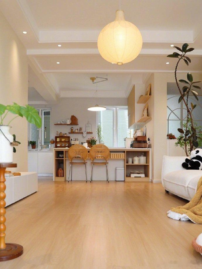比较常见的左右户型,地板通铺搭配原木风,比较出效果.. 家居家居[超话]