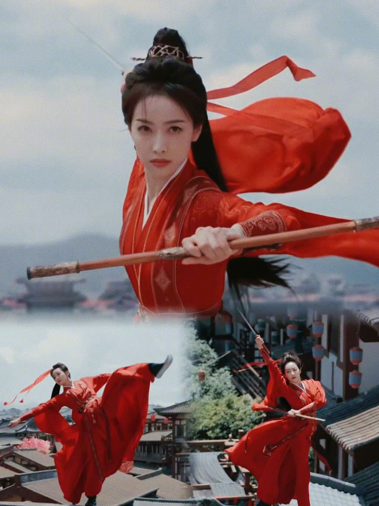 宋茜红衣舞剑直拍 一袭红衣尽风华!舞剑这段真的太养眼了,刚柔并济,发带飘逸,将东方美学诠释得淋漓尽致! 跟着宋茜解锁冬日职场优雅法则