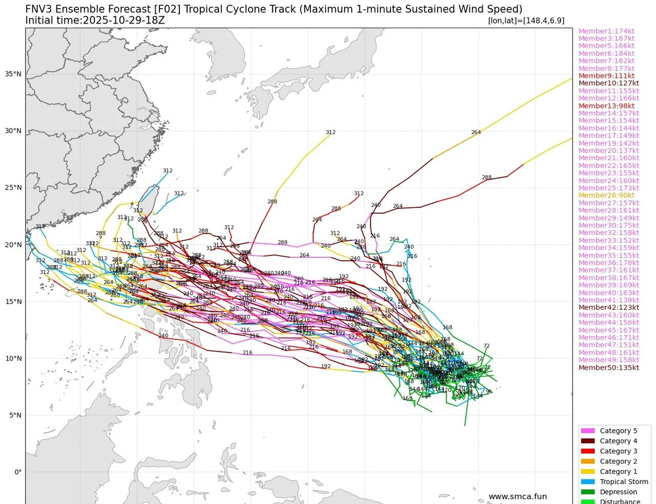 台风凤凰酝酿中,可能登陆影响我国 目前位于美国关岛东南方向有东风波系统发展当中。根据AI歌谷模型fnv3,路径大幅度西调,开始逐步收束。最新成员路径集合来看,有不小概率登陆影响我国,也可能进入我国南海后转向。 天气 台风