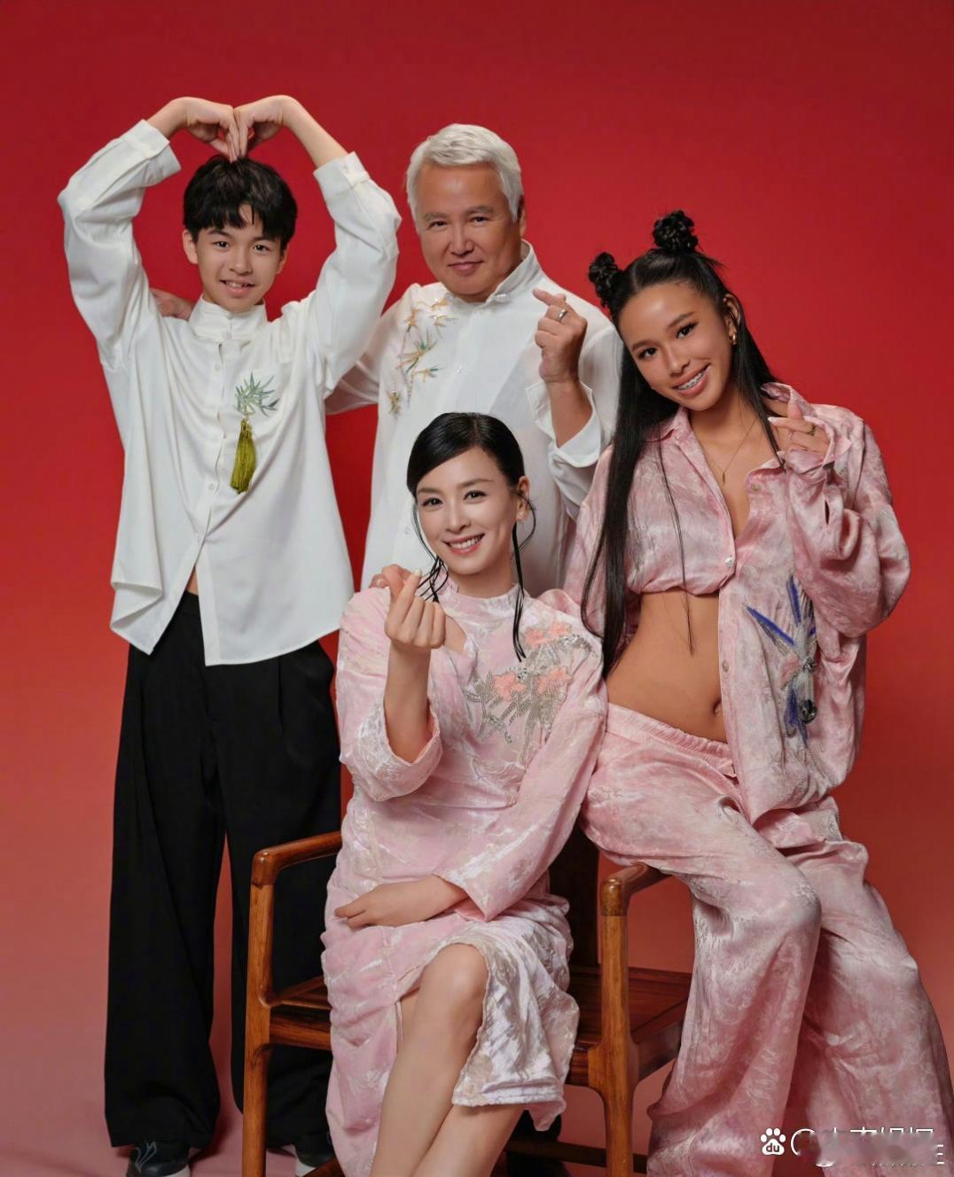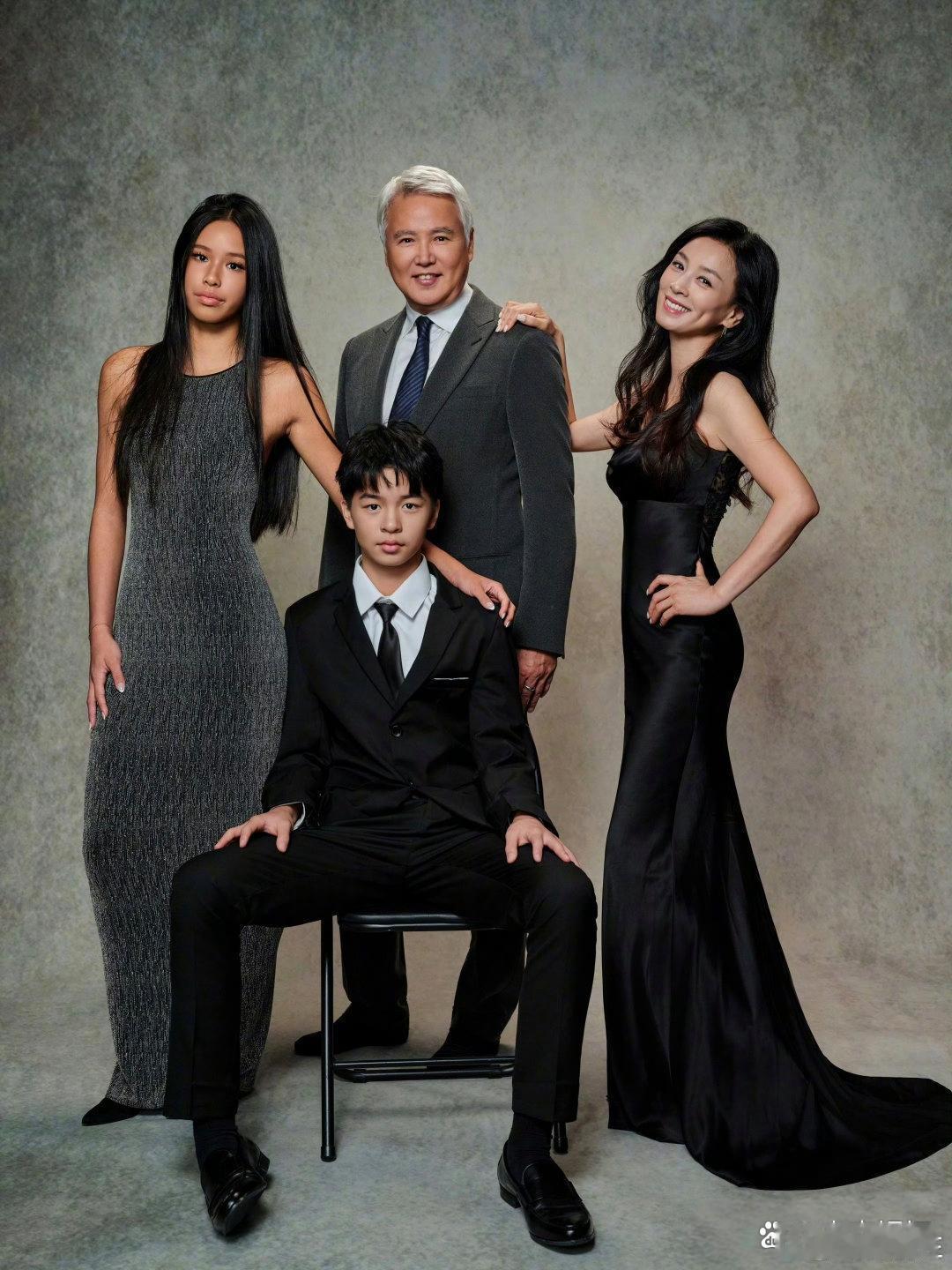 张庭一家四口拍摄全家福,65岁林瑞阳满头白发,面相好慈祥。他们的一对子女身材高挑,皮肤黝黑,颜值都很一般啊!