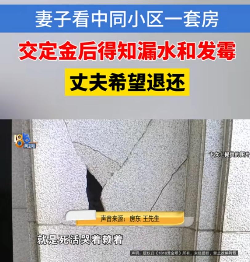 浙江杭州,女子跟公婆不和,背着老公在同一小区买了171万的房子,想分开住,没想到,10月15日,交完3万定金后,中介才告知房屋有漏水、裂纹和大面积发霉的情况,女子家人一看不乐意了,反对购房,要求退还3万定金,房东却表示,她看了房子才签合同,按照合同一分不退,结局闹心。 杭州临平旭辉府小区,卞女士为躲公婆,没跟丈夫商量就盯上同小区一套房。 101平一楼带院,中介天天念叨“划算”“低于市价”,她没看第二套,10月15号晚上直接转3万定金给房东王先生,签了协议。 交完钱后中介才支支吾吾说房子漏水,等卞女士带家人再去,当场傻了眼,墙面渗水印子顺着墙角流,裂缝爬得到处都是,墙根霉斑黑黢黢一片,地面还明显下沉。 她指着窗户喊,前两次看房,这些全被窗帘死死挡住,压根没见着。 丈夫得知当场炸了,家里本就有一套房,俩孩子全靠老人带,根本没法分开住。 他跑去比对同小区房源,108平不带院的才157万左右,这套101平的171万,哪儿来的“划算”?夫妻俩吵到脸红脖子粗,卞女士非要买,放话不同意就离婚,丈夫咬死不松口,逼着她退定金。 找房东后王先生更是一肚子火,他看房时没在场,全靠中介传话,现在只认合同:“签了字就不能反悔,定金不退。” 卞女士退一步说要2万,丈夫降成1.5万,都被他怼回去:“自己家闹离婚,赖房子有问题,没这道理。” 去链家门店找说法,经手业务员躲着不见,店长接电话硬气:“两次都带你看全了,没人隐瞒。” 可卞女士拿出照片视频,霉斑裂缝清清楚楚,店长挂了电话不再露面,后来中介发文字说,签约时问过房东,说主体不漏水,真想买能帮忙协调维修,解约只能慢慢协商。 再看那份定金协议,一条款扎眼:“乙方确认实地看房,全面了解状况,不得再以瑕疵解约,”懂法的人说,这条款合法,卞女士要是拿不出中介故意遮挡的证据,算买方违约,定金还真难要回。 好好的分开住心思,变成一地鸡毛,卞女士蹲在小区里抹眼泪,3万定金卡在中间,房东不退,中介不管,丈夫还在冷战。 这事闹到媒体那也没个准信,只留下一堆教训:买房哪能光听中介吹,窗帘得拉开看,墙角得摸,同小区价格得比,最关键的是和家里人事先得商量好。 现在三方还僵着,3万块没着落,卞女士再路过那套带院的房子,只能绕着走,墙面的渗水痕迹还在,就像这事儿留下的疙瘩,怎么都解不开。