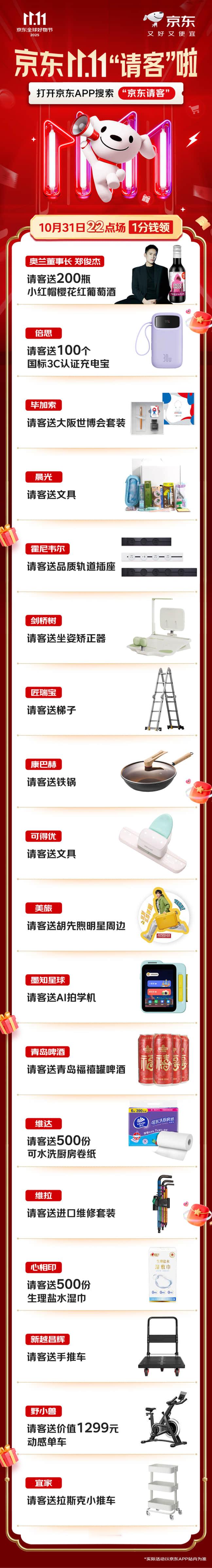 京东请客这事儿是没完了吗?直接请客炸鸡红酒大闸蟹还联合上百家品牌都来接龙请客,衣食住行全包了,连长虹空调和苏泊尔水暖毯都送,这还怎么忍得住!10月30日晚8点,京东11.11连续3天,疯狂加补!直接降价不凑单!大家快去预约,有福同享!又好又便宜的11.11 只在京东!京东请客送炸鸡红酒大闸蟹 京东11.11 又好又便宜 京东11.11直接降价不用凑单 京东11.11今日请客