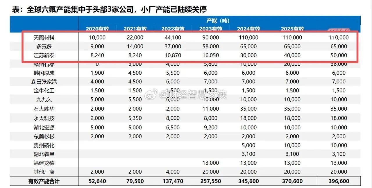 多氟多25、26年无新增产能,天际当前满产,26年有扩产计划,预计新增1万吨