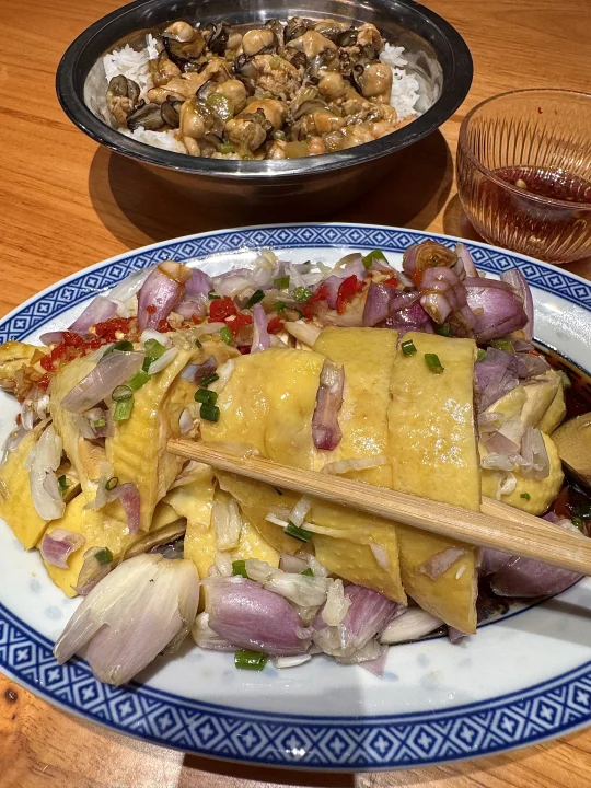 黑芝麻炖奶!芝麻糊好细腻 顶上炖奶像双皮奶一样入口即化~热乎乎的来一碗整个人都暖和了😭 蚝仔捞饭、红葱头油淋鸡、干蒸肉燕,每一道都好惊喜!花雕鸡随便涮涮都很好吃!吃完已经在和朋友商量下次啥时候来了。。📍补店)