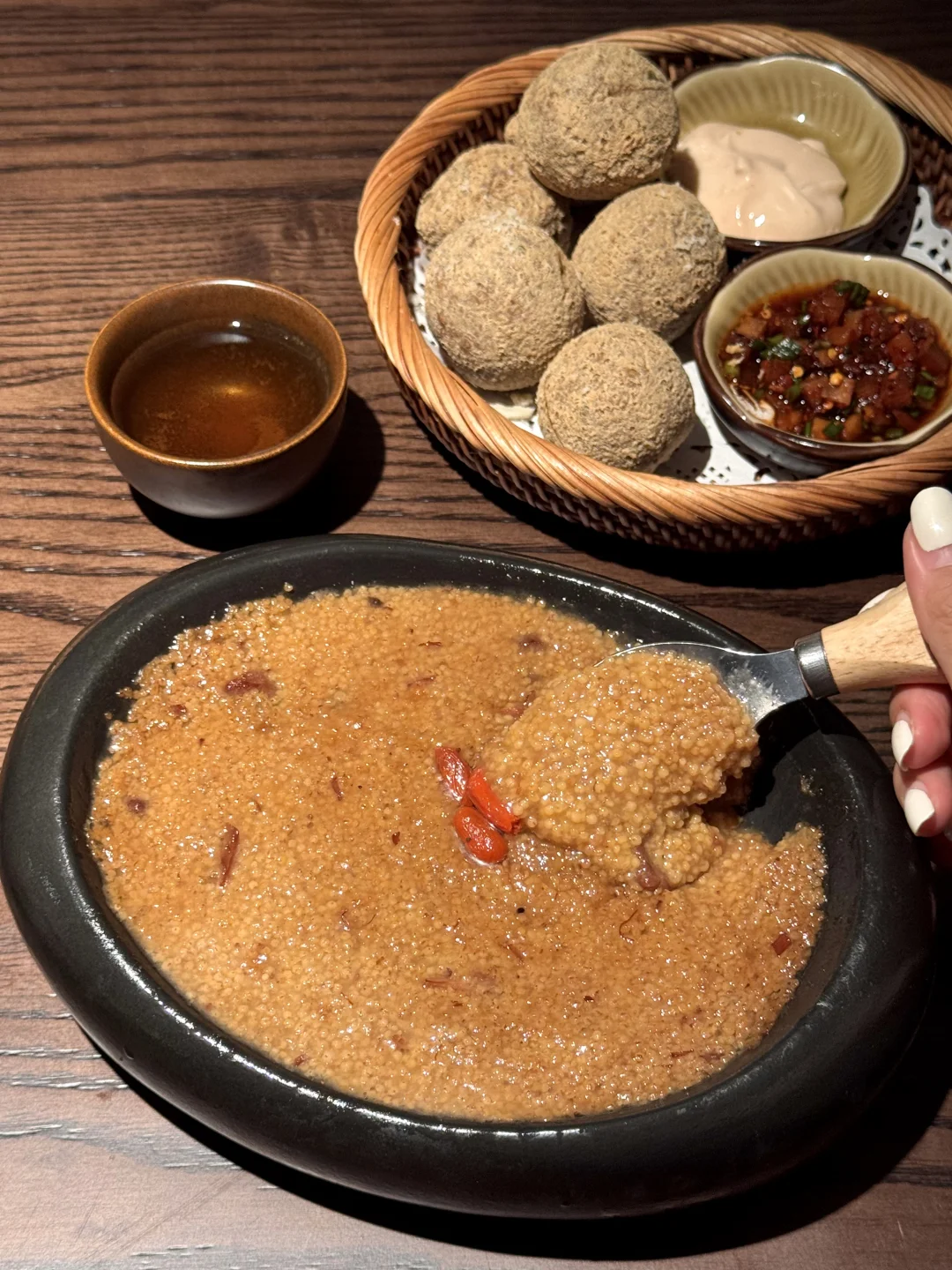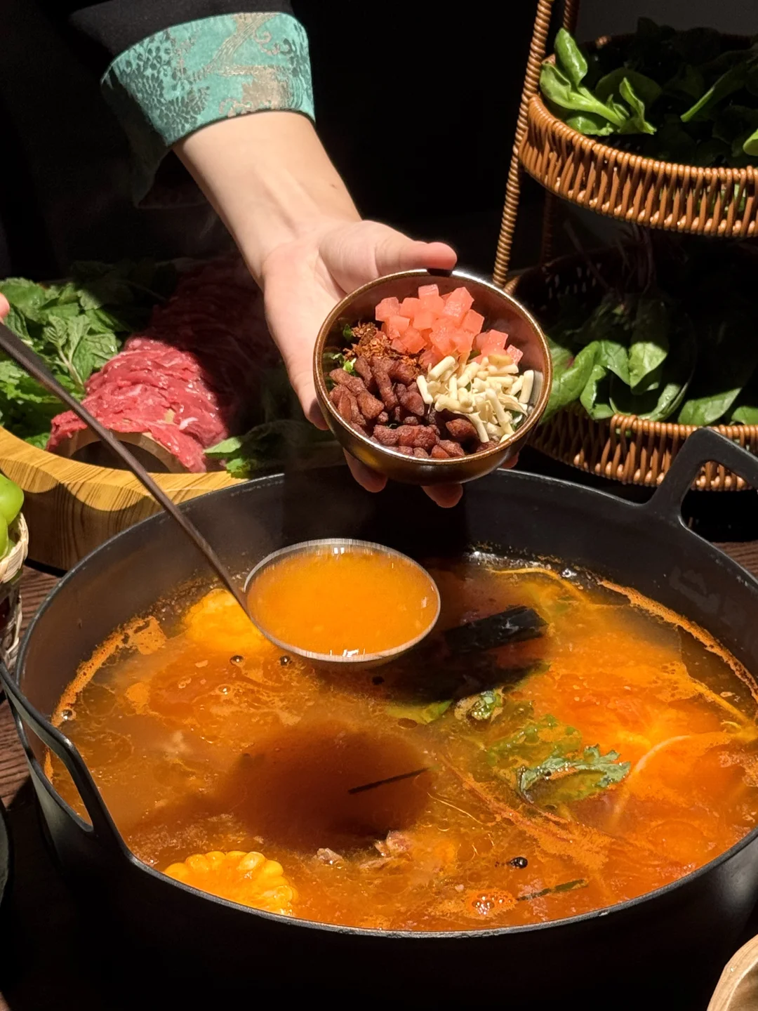 就在西湖边小巷子里!宝藏店+1!一周刷了3次… 酸汤锅底嘎嘎好吃!调料除了蒜末香菜一定要加一勺脆哨和粉萝卜丁!丝毫不普通 木姜子牛肉、薄荷吊龙、鲜切鲜牛肉、各种野菜菌菇涮啥啥香~还有浓郁小米鲊、奶酪豆腐圆子各种特色小吃!值得带朋友来n刷!叫:山夏间)