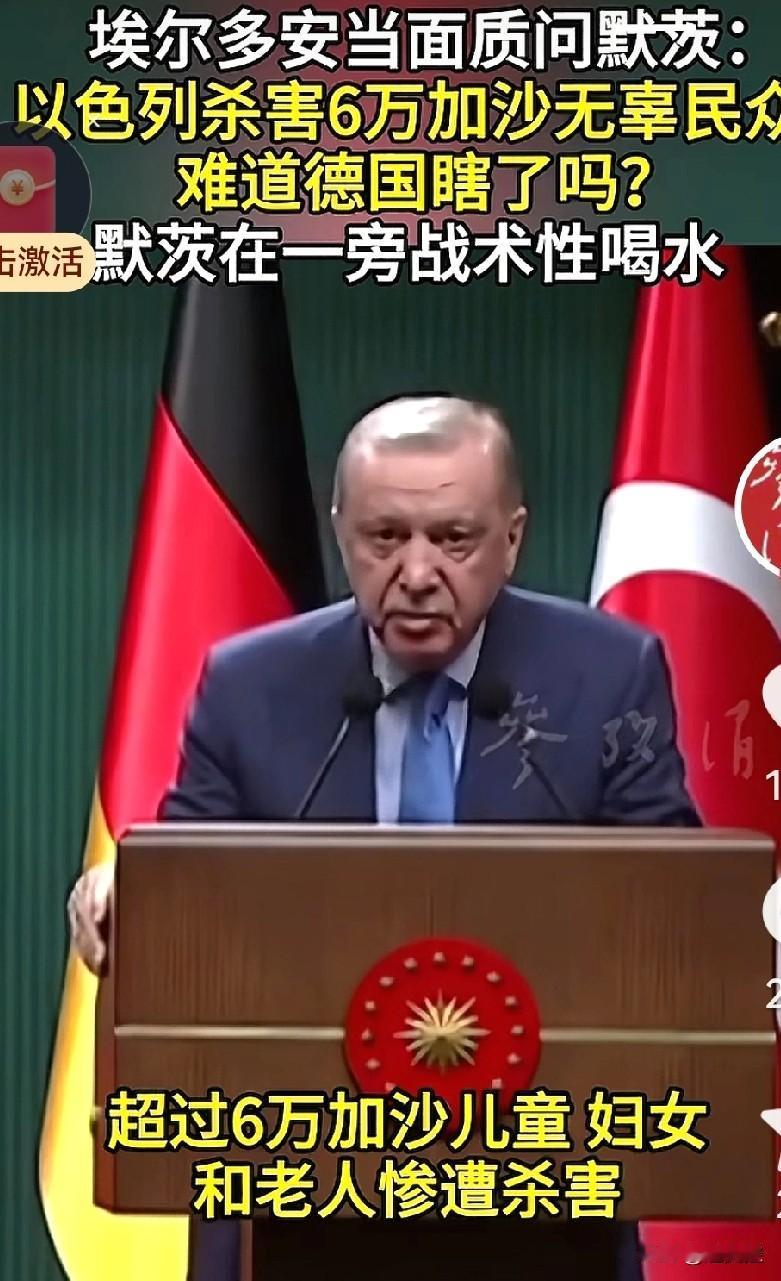 土耳其总统埃尔多安够彪,确实是不怕得罪任何人的。他当面质问德国总理默茨,以色列对加沙停火后的精准轰炸,难道德国看不见吗?德国总理默茨很尴尬,只能战术性喝水。火药味很浓。加沙停火是外交秀。中东地区的人知道也不说,欧洲国家的更多是配合美国的表演,法国总统马克龙不是去参加所谓和平峰会了吗?中东枭雄埃尔多安真不是虚名。德国虽然有点历史旧债,但不至于熟视无睹地任由以色列打击加沙而装聋作哑。我从来不相信以色列会放下屠刀。这次不正是明证吗?