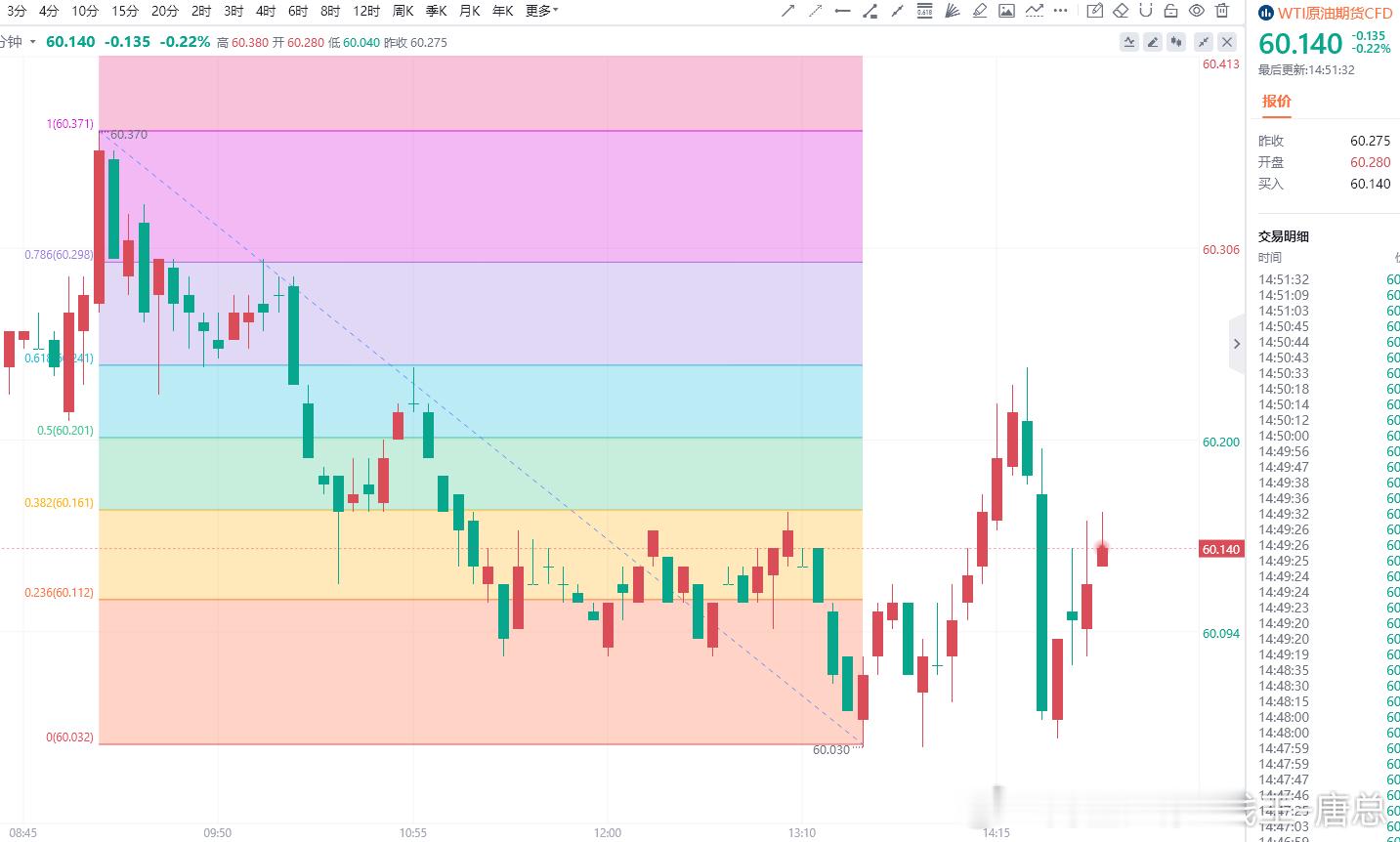 WTI油价目前在60.10美元/桶附近波动,比前一天小幅回落。