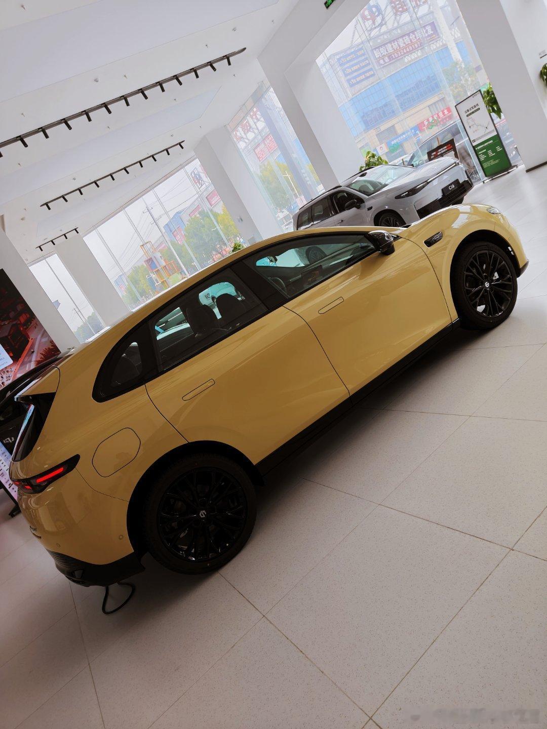 今天开着我的C01去做保养,等车的时候在展厅里溜达,正好看到刚到店的零跑LAFA5。这个电掣黄的配色真的太抓眼球了,在展厅灯光下特别亮眼,看起来很拉风,感觉开出去回头率肯定很高。