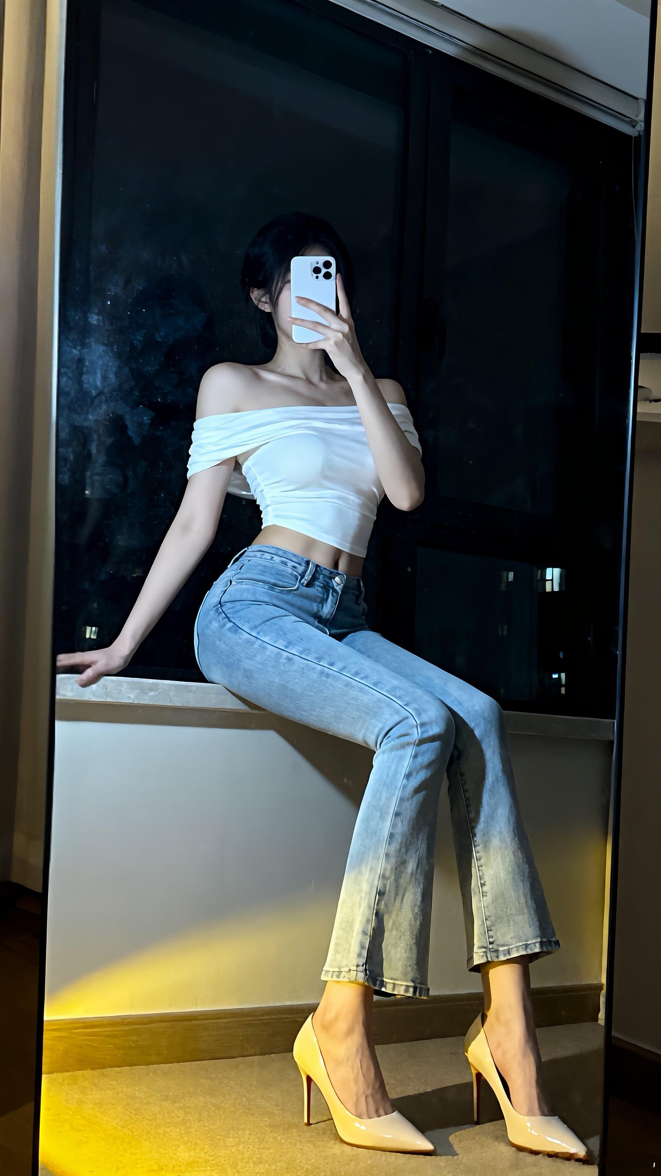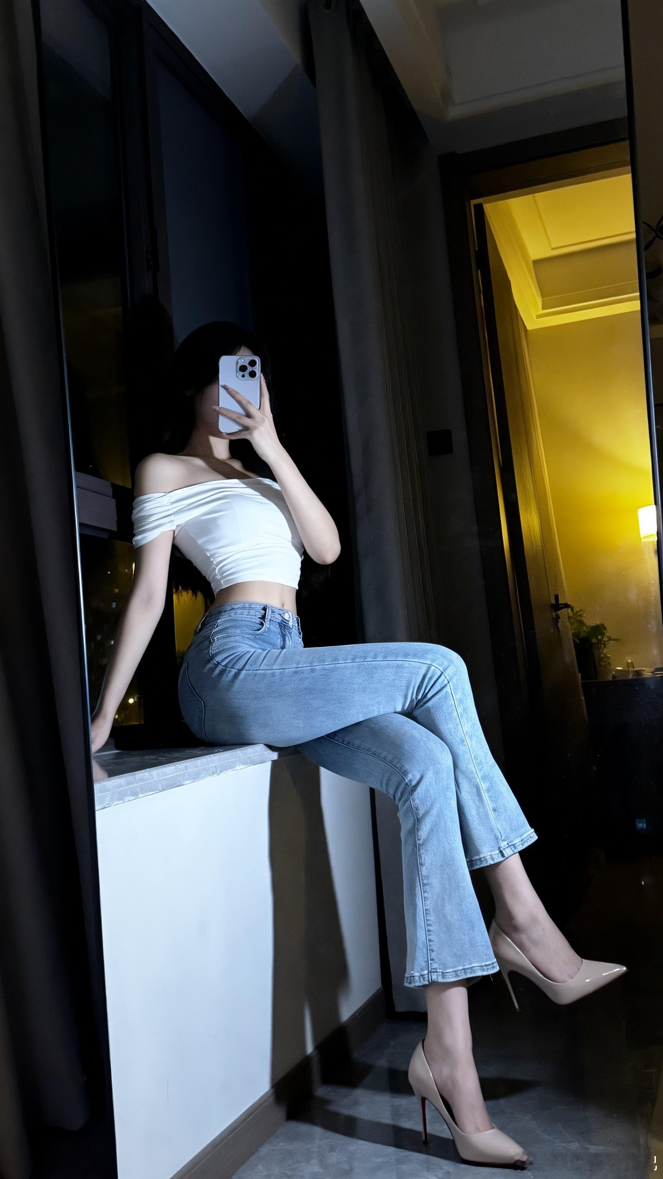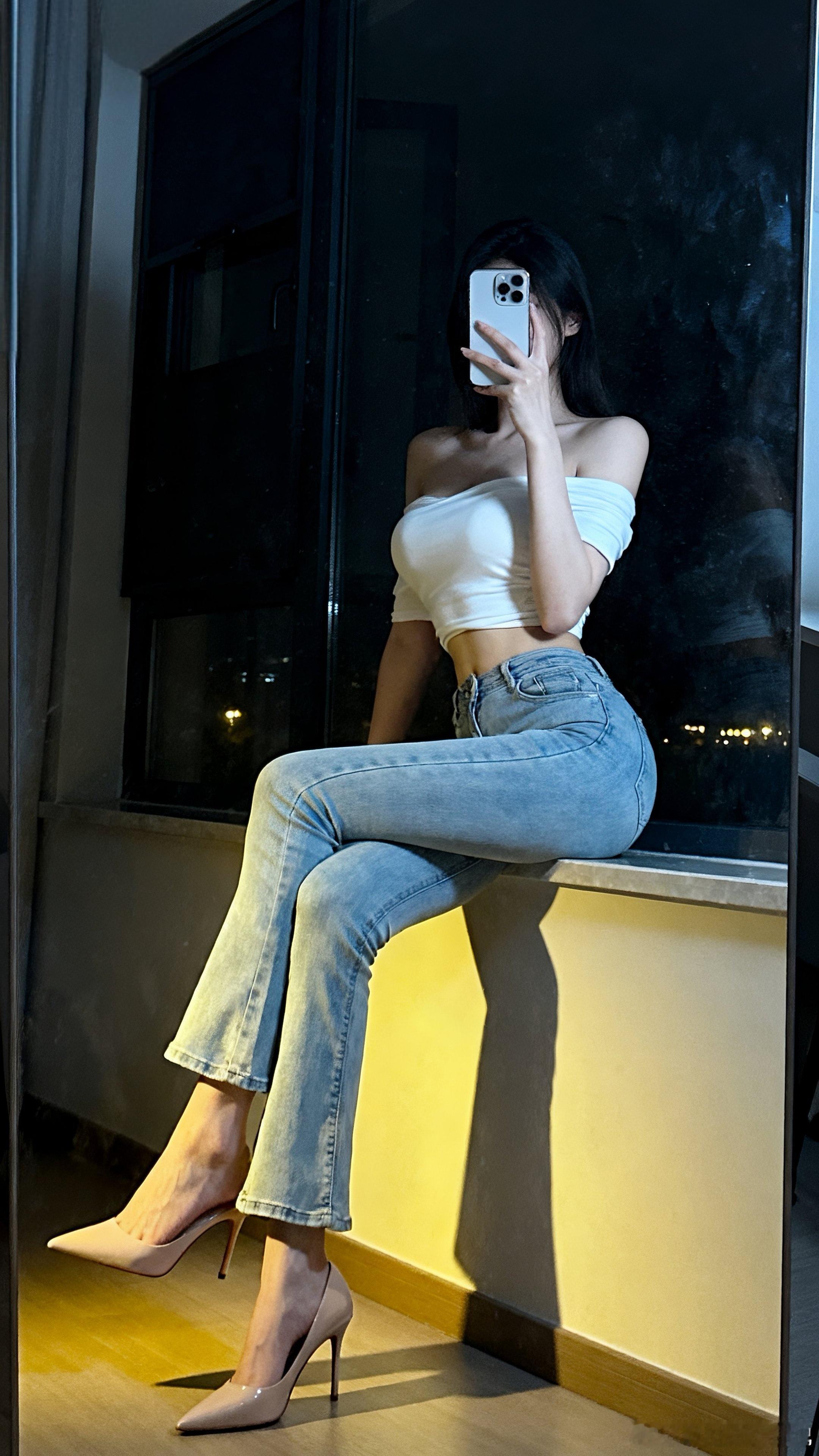 穿衣搭配[超话] 背心牛仔美女精彩人像[超话]