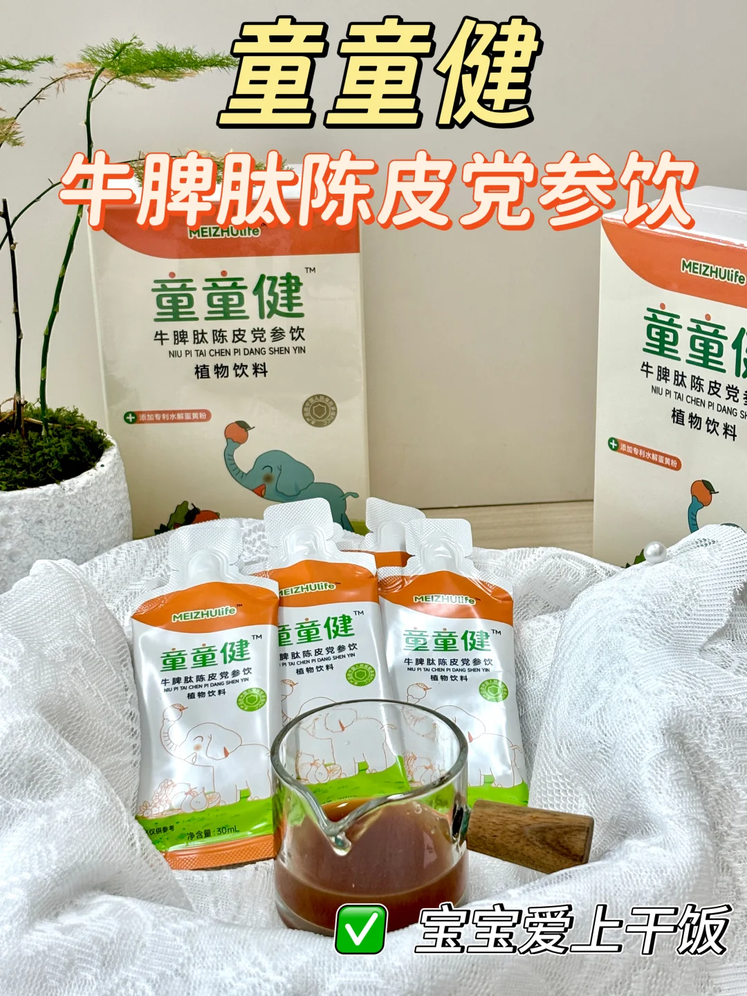 🙋宝妈们集合!有没有同款吃饭让人操碎心的娃 吃两口就喊饱 追着喂也不肯张嘴 吸收差积食 个子比同龄人矮半头 真的为宝宝脾胃问题焦虑到头秃… 直到我挖到这个宝藏 ✨【童童健牛脾肽陈皮党参饮】 直接让我家饭渣宝宝变身干饭小能手! 现在一到饭点就主动坐餐椅 小碗能扒得干干净净👏 🌟种草亮点整理: 1️⃣ 古方新用超安心 由经典「四君子汤」改良而成 药食同源配方 温和不刺激 专为现代宝宝体质优化升级 2️⃣ 黑科技成分揭秘 ✨水解蛋白粉:获得促骨骼生长专利 像蛋黄肽能形成小鸡骨骼一样 帮助宝宝构建健康骨骼框架 ✨水解蛋白乳清:亲和人体的蛋白质 吸收率UpUp 再也不怕营养浪费 3️⃣ 专利发酵工艺 把营养大分子分解成小分子 脾胃虚弱宝宝也能轻松吸收 从根源强健脾胃 告别积食烦恼 💡食用指南: ✅3岁以上儿童及青少年 ✅每天2-3次 每次1袋 ✅温水冲饮或直接撕开喝 我家娃超爱陈皮清香 每次都主动要~ 真的吹爆这个健脾饮! 现在宝宝吃饭香、便便顺 半年体检身高窜了3cm🎉 身边宝妈都被我安利了个遍