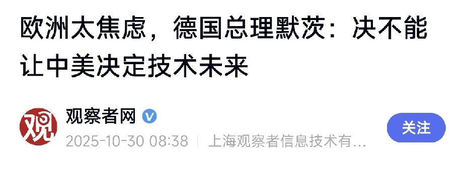 中美就关税问题达成共识,德国气得暴跳如雷,宣称不能由中美来决定技术的未来!特朗普在中方处吃下“定心丸”后,下一步将继续对欧洲发难,很可能会设法让欧洲分摊美国债务。有专家表示,欧洲极有可能走向去工业化。 工业发展离不开电力,北溪管道被炸后,廉价天然气供应中断,欧洲难以维持低价电力供应。 中美掌控了超六成的AI技术,欧洲若想单独挑战中美,几乎是天方夜谭。 原本中欧进行谈判时,若能深度绑定,特朗普便无计可施。然而,欧洲不安分守己,还妄图依托美国对中国耍些小动作。 中美峰会达成协议后,欧洲沦为孤家寡人。特朗普在从日韩拿到高额保护费后,必然会再次对欧洲出手。 对此你作何看法?
