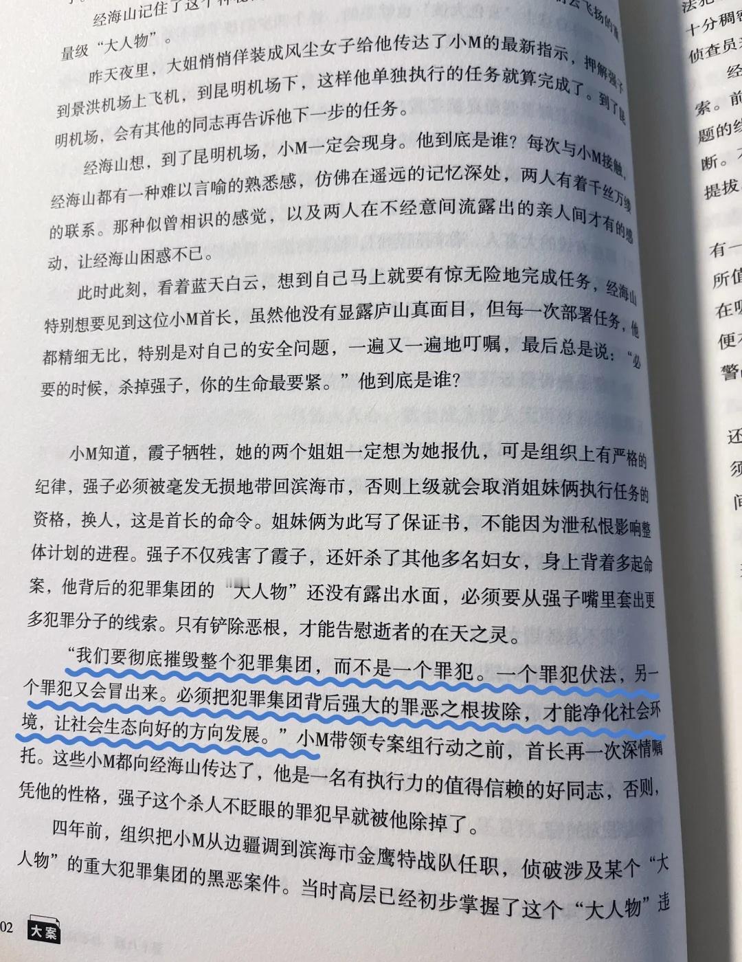 搅动风云的涉黑重案,人性善恶的博弈之争 - “路虽远,行则将至;事虽难,做则必成。” ——《大案》穆继文 NO.787 · 想要看真实的破案故事,当然就是看专业破案的人写的才够味啊!穆继文老师三十八年来,从基层民警做起,有着丰富的办案经验。而这本《大案》居然是他根据真实办案经历创作的。在他眼里的大案,究竟搅动着多大的风云? · 十年前,初出茅庐的经海山到警局,被分配给了郭所长当徒弟。在警局门口的一起案子,似乎改变了他的一生。校友大鹏和辉子在路边遭遇神秘男子袭击,辉子幸存下来,而大鹏却倒在了家门口。警方无论如何都找不到这个被老所长称为带着“玄色”帽子的神秘男子,直到郭所长牺牲,经海山都当上了所长,案件还未侦破。 · 十年后,这个男子疑似再度犯案,不仅将辉子一直追求的校友高美丽的老公和儿子撞亡,还杀害了早已成为大老板的辉子手下的讨薪农民工。大鹏姐姐大香原本是经海山的女友,可转头嫁给了一直代替大鹏照顾她们家的辉子!同时辉子也给经海山坦白,他们是一定抓不住凶手的,只有他知道事情的真相…… · 经海山被人背后运作,被调到了另一个职位,假装在一场车祸亡故后,被启用为卧底。他需要前往某国将秘密通缉令的罪犯带回国,而这个人正是杀害高美丽丈夫和儿子,以及讨薪农名工的真凶!原本这个人已经被判处极刑,却在保外时逃跑,被击毙。辉子和他哥的保护伞一定位高权重,他的任务艰巨而沉重。 · 经山海费劲千辛万苦将恶贯满盈的此人带回国,并掌握了他的许多罪行,此人却在回国后被莫名其妙击毙。之后他也并未恢复身份,上级让他深潜去接触与此人有染,同时曾是辉子他哥背后“老大”的情妇艾梦,寻找黑恶势力的罪证。 · 就在他不停收集罪证时,辉子公司的核心人物一个个都轻生去世,但现场都透露着不寻常,仿佛背后有一股神秘力量伪造了这一切。不久后,他再次和战友潜进分公司,为整个黑暗势力的收网提供有力支撑。在他们步步为营,举步维艰的推进中,背后的黑暗保护伞终于浮出水面,多年前的真相也逐渐被揭开…… · 我是没想到,他真的很敢写!一个改变了他们命运的小案子,居然能够牵涉出巨大的涉黑重案。在整个案子中,人性是值得玩味的。有人不忘初心,有人被腐蚀,有人倾尽全力去保护人民,有人恶事做尽……总有一天人会为自己的所做所为付出代价。 我的私人书单 大案 穆继文 刑侦破案