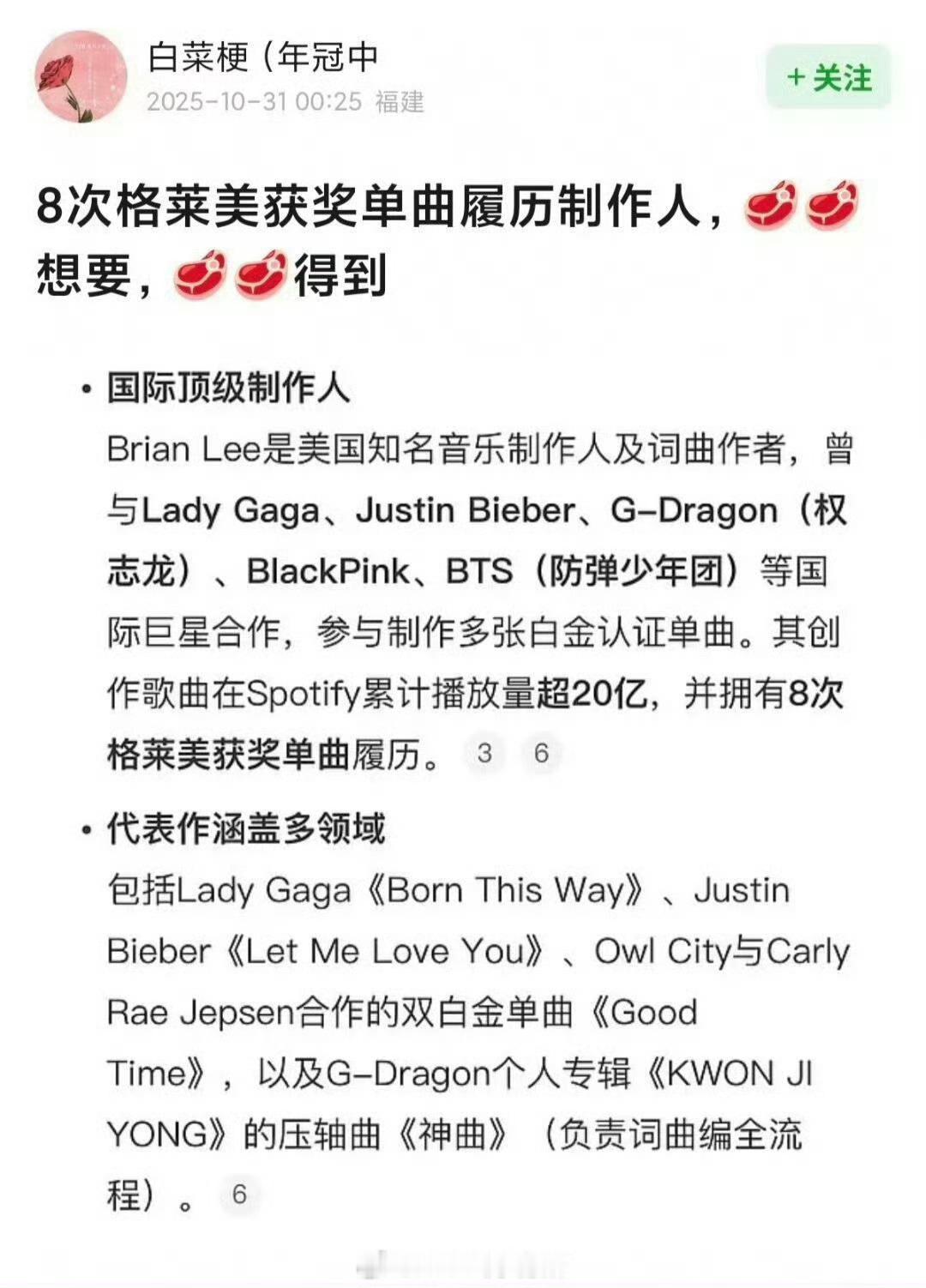 赵露思新歌词曲制作是8次格莱美获奖单曲履历制作人