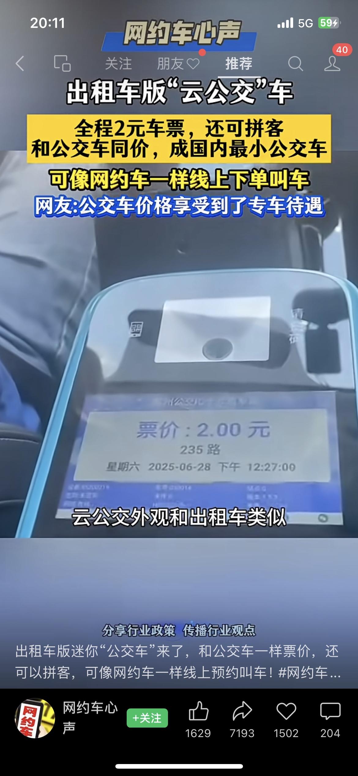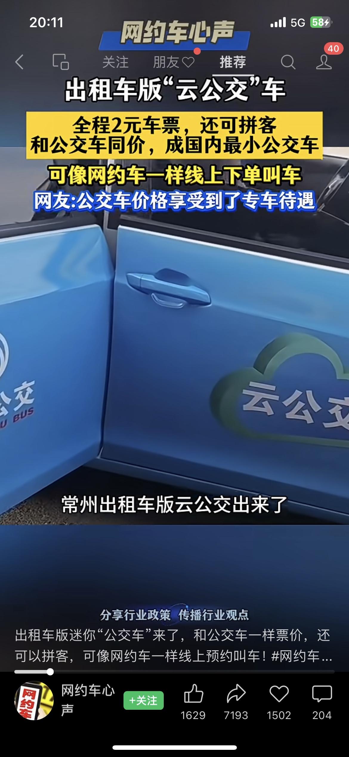 常州疯了!2块钱坐“专车” 常州人要笑疯了:刚上线的“云公交”,2块钱就能坐,像网约车一样手机下单,还能拼客——相当于花公交钱,享受“上门接+送到家”的待遇,网友喊“比共享单车香10倍”。 你所在的城市啥时候能抄作业?这羊毛你会天天薅吗? 转给通勤的朋友:明天上班别挤地铁了,这车不香吗?