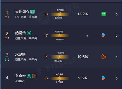 成毅天地剑心12.2%,天地剑心12.2%登云合第一,咱就说我们的王权富贵一步一步走向了属于他的自由世界,恭喜登顶云合,期待住接下来的故事啦~