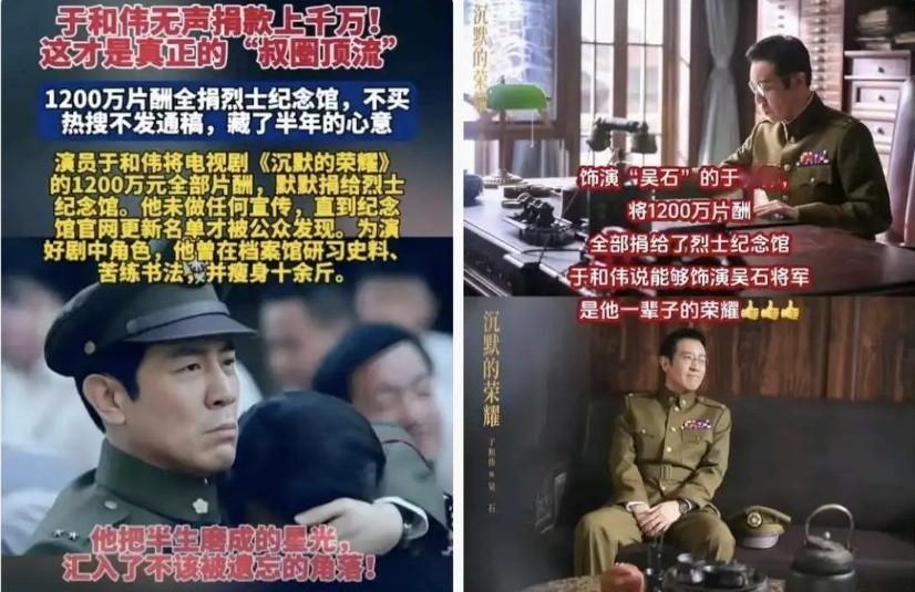 最近网上疯传于和伟把《沉默的荣耀》片酬1200万全捐给吴石烈士纪念馆,帖子配图有模有样,评论区全是对他的夸赞。可仔细一瞧,没一个帖子说清楚消息来源,也没捐款凭证和官方公告。 10月30日记者联系福州、北京多部门求证,工作人员均表示未听说此事。福州螺洲镇政府和文化投资公司称没这纪念馆,也没收过捐款;福州市退役军人事务局表示款项没进账,相关项目也未申报。北京相关部门也说没“吴石烈士纪念馆”,没收到筹建申请。 A网友:这明显就是有人在给于和伟上眼药,搞道德绑架。如果本人本来就打算捐没问题,但如果有些别有用心的人用道德绑架,那就很恶劣了。如果被迫捐了,那以后是不是随便发个新闻,就得有人捐款,如果最后没捐,名声就会受影响,硬生生给人家扣上个诈捐或者是抠门的帽子。 B网友:很明显是有人在搞于和伟了,跟前些日子搞张颂文如出一辙。先造个谣,搞热度,再来打假破坏名誉!关键是打假不需要这些人自己打,地方上肯定会出来辟谣的,这就是那些人的小算盘。 C网友:这片子太成功,有人想用老百姓对演员高薪酬的嫉妒痛恨,去冲掉片子的社会作用,把注意力转移到对演员薪资的讨论上。 主管部门应当调查传言的真实性,如果是造谣,应严惩。捐不捐人家自愿,拒绝道德绑架。这事儿目前看来真实性存疑,大家还是得等更确切的消息。