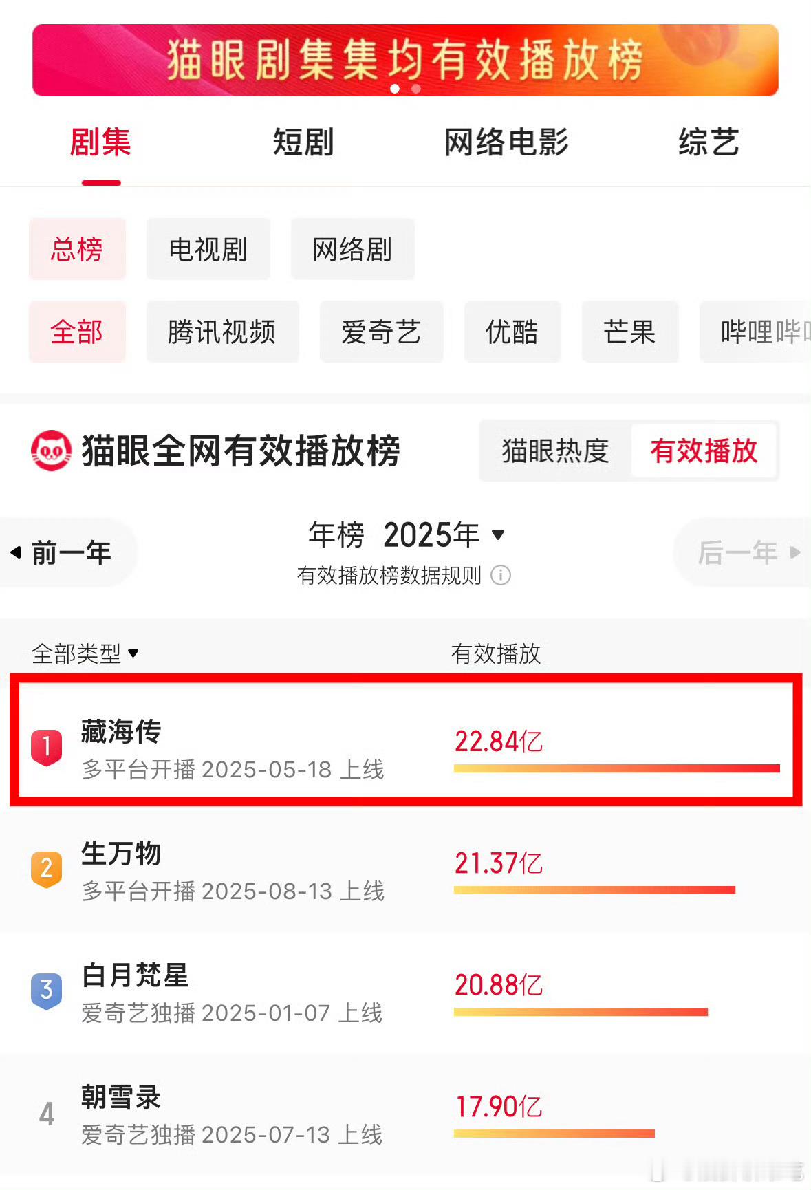 嗯,陈情令和藏海传就这么权威,怎么吹都绕不开的绝对大爆剧肖战藏海传累计播放量超