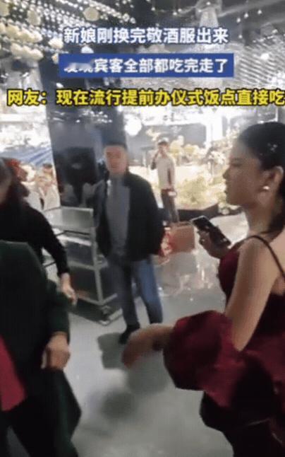 山东一新娘刚换完敬酒服出来,竟然发现宾客已经全部吃完走了,新娘满脸尴尬,却又不好说什么,站在原地不知所措的模样,让人看了心疼不已,没有敬酒环节,意味着还礼流程有缺陷,难免有遗憾!网友却调侃:现在流行提前办仪式饭点直接吃! 山东一场婚礼的宴会厅里,刚换好红色敬酒服的新娘推门而出,眼前的景象让她瞬间僵在原地:满桌残羹冷炙,餐盘堆叠如山,原本坐满人的席位空空荡荡,连最亲近的长辈都没留下,只有几名服务员正忙着收拾残局,这场少了敬酒环节的婚宴,留下了肉眼可见的遗憾。 这场意外并非个例,背后藏着婚礼流程与地方习俗的错位。在山东多数地区,婚宴的敬酒环节向来被视作核心流程之一,新人端着酒杯逐桌感谢宾客,既是对随礼祝福的回应,也是传统礼仪中 “还礼” 的重要体现。 当地民政部门整理的婚嫁习俗资料显示,90 年代后即便婚宴搬进酒店,这一环节的保留率仍超过 85%,尤其对看重人情往来的长辈而言,没喝到新人敬的酒,甚至会觉得 “心意没送到”。 问题往往出在流程衔接的细节上。新人换敬酒服、补妆通常需要 20 到 30 分钟,这段时间恰是宴席上菜的关键节点。有婚宴策划师透露,部分酒店为赶翻台效率,会在仪式结束后迅速上齐所有菜品,包括象征宴席收尾的主食或点心。 此前浙江就曾发生过类似事件,酒店提前上了馒头,宾客按当地习俗以为宴席结束纷纷离席,最终引发新人与酒店的纠纷。 现代婚宴的 “快节奏” 也在消解传统环节的生存空间。随着移风易俗推进,不少婚礼压缩流程,将仪式集中在上午 9 到 10 点举行,结束后直接开席,省略了过去的茶歇、等待环节。 年轻宾客更倾向于 “仪式看完、饭菜吃完就走”,尤其异地赶来的亲友,常需赶返程交通,很难预留出等待敬酒的时间。婚礼行业数据显示,近三年全国婚宴的平均时长从过去的 4 小时缩短至 2.5 小时,敬酒环节被省略的比例上升了 17%。 宴席的上菜顺序与时间把控成了关键变量。有经验的婚庆团队会提前与酒店沟通,将汤品、主食等标志性收尾菜品,推迟到敬酒环节开始后再上,给新人留出缓冲时间。 但此次事件中,显然没做好这种衔接,可能是酒店按常规流程上菜,也可能是新人方未提前明确需求。律师曾指出,这类情况往往双方都有责任,新人有义务告知特殊流程需求,酒店也应主动了解当地习俗。 网友的调侃折射出两种观念的碰撞。有人觉得 “现在流行高效办席,仪式和吃饭分开更省心”,也有人惋惜 “没敬酒就少了人情味儿,随礼的心意没得到回应”。在社交平台上,类似话题下常有分歧,年轻人多支持简化流程,而长辈更看重传统礼仪的完整性,这种代际差异也让婚宴流程的安排愈发棘手。 事件带来的后续影响也值得关注。对新人而言,缺失的敬酒环节可能需要通过后续拜访、电话感谢等方式弥补,避免人情往来出现疏漏。对婚宴从业者来说,这也敲响了警钟,尤其在重视礼仪的地区,需建立更细致的流程沟通机制,提前确认上菜节奏、环节衔接等细节,减少类似意外发生。 对此,你们有什么看法,欢迎评论留言~