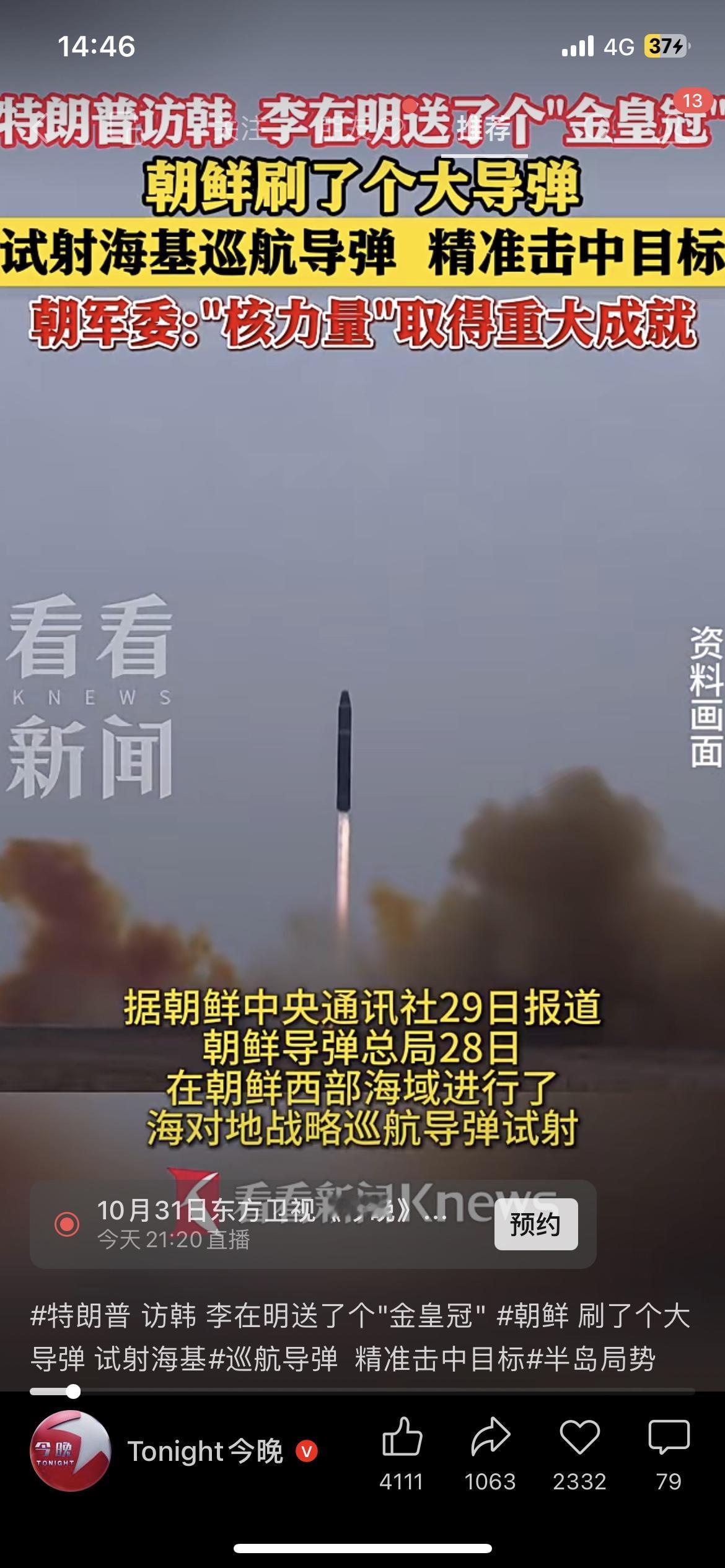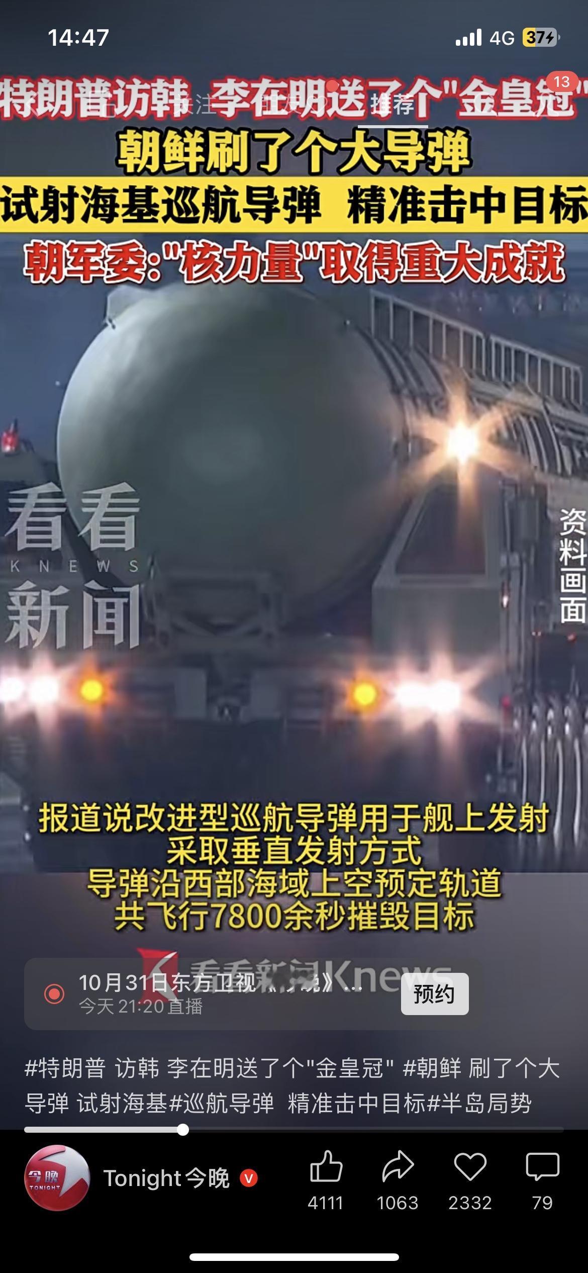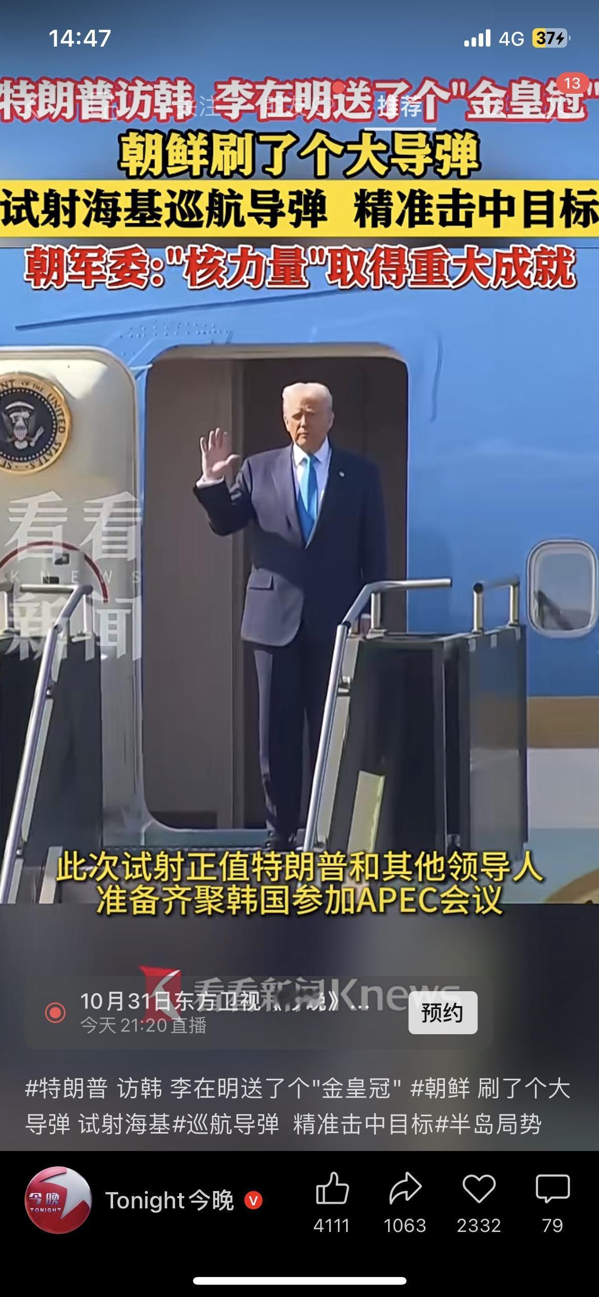 特朗普刚到韩国!朝鲜就射导弹 刚刷到这事儿我直接看愣了!特朗普刚落地韩国参加APEC,朝鲜反手就试射海基巡航导弹——飞了7800秒,精准砸中目标! 这边李在明还捧着“金皇冠”迎接,那边朝鲜直接官宣“核力量大成就”,这巴掌扇得也太狠了…这是故意给特朗普下马威?朝鲜防空导弹 特朗普怒怼韩国