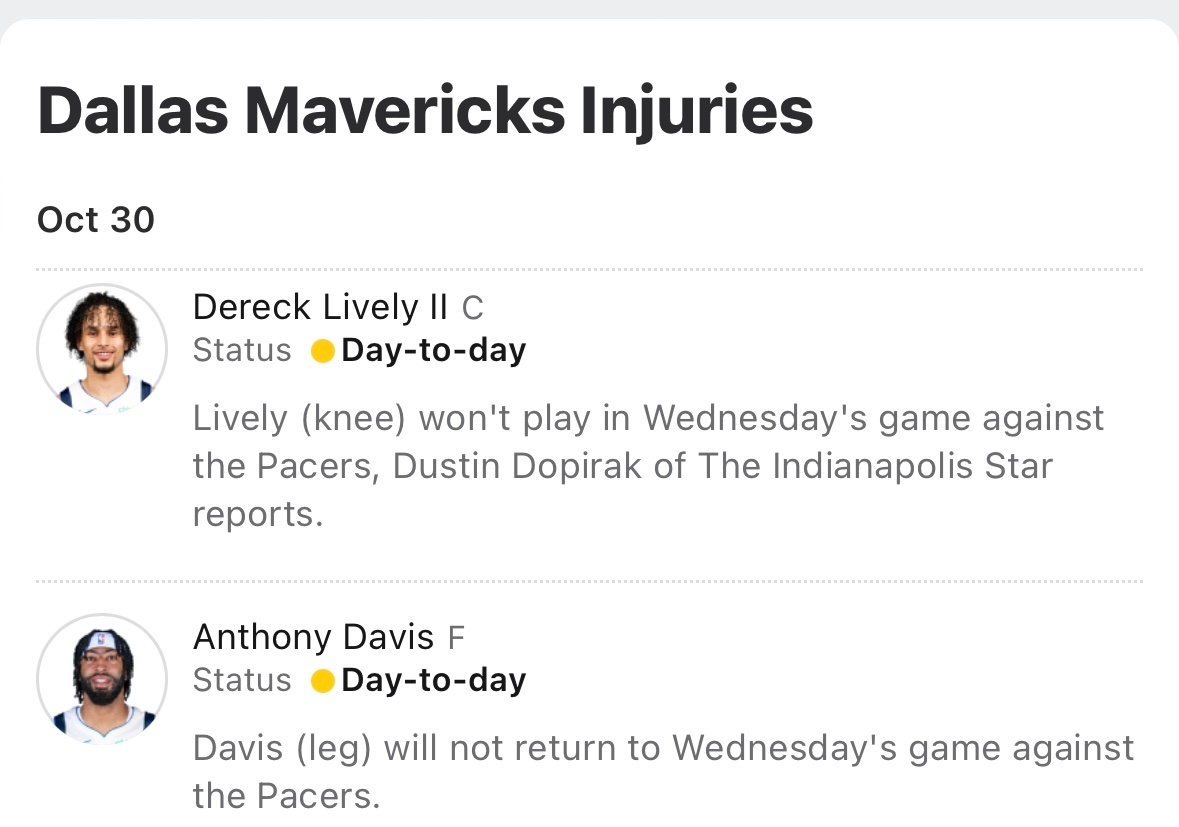独行侠今天没有出浓眉的伤病报告,后天对阵活塞,明天应该有了。