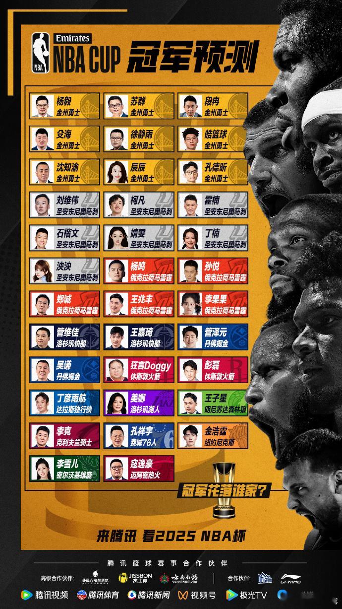 本赛季NBA杯赛明天开战,这回支持一下勇士 2025NBA杯