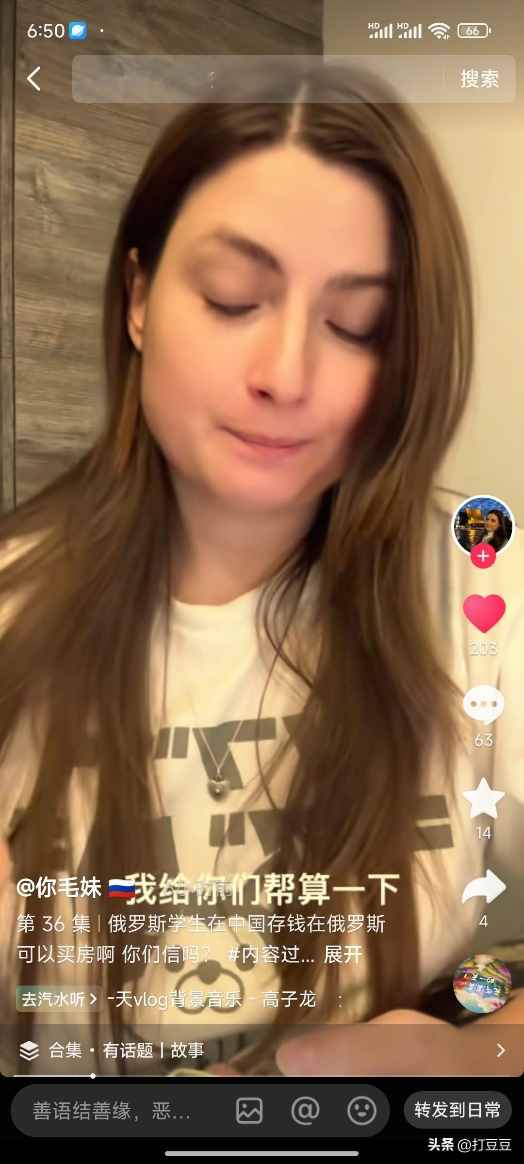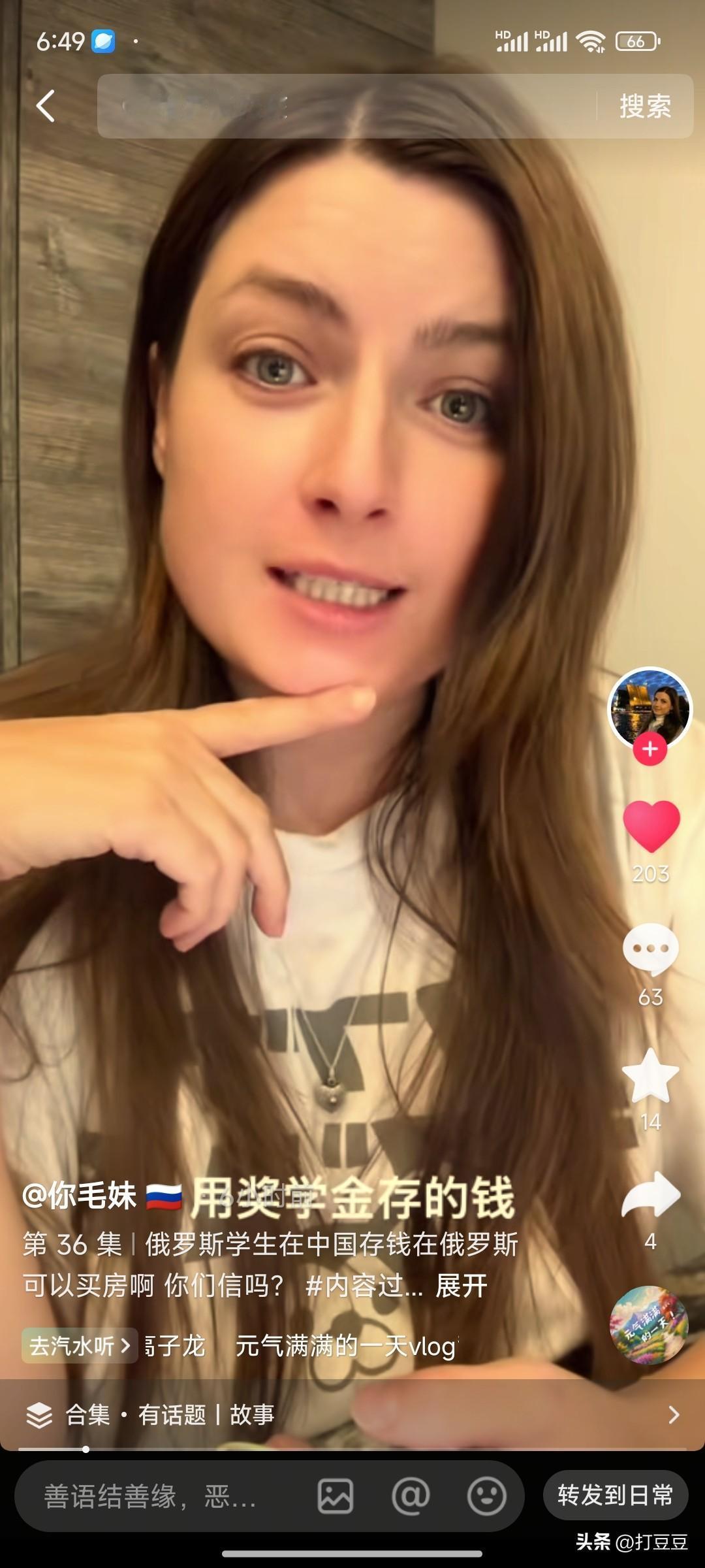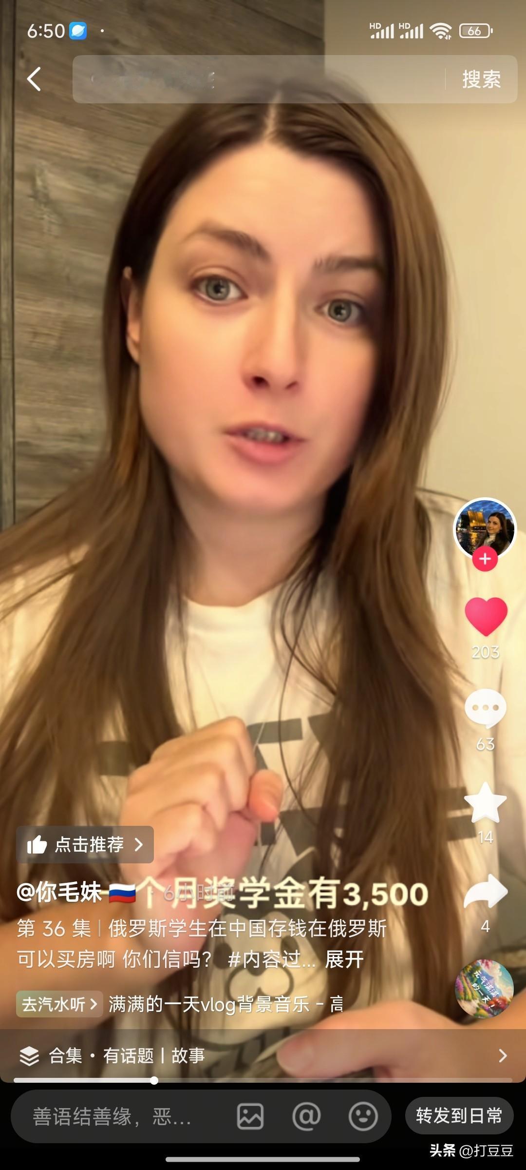 刚从某音上看到一个“你毛妹”的博主谈的事,有点不知所措了,原来传说或者捕风捉影的事总是有影子的! 这位博主俄罗斯来华留学生,目前在从事翻译工作,硕士生。 她说:不要看不起你身边抠门的俄罗斯同学,他在中国读书的时候用奖学金存的钱,在俄罗斯买了房子啊! 她说大部分的俄罗斯留学生都有奖学金,本科是一个月三千,她是硕士,一个月三千五!一年给到手的现钱就三万多,加上住宿费,学杂费等的减免,每个人每年补贴上五万块钱不多吧?算算现在中国有多少留学生? 声明:上述言论为俄罗斯留学生的自述!
