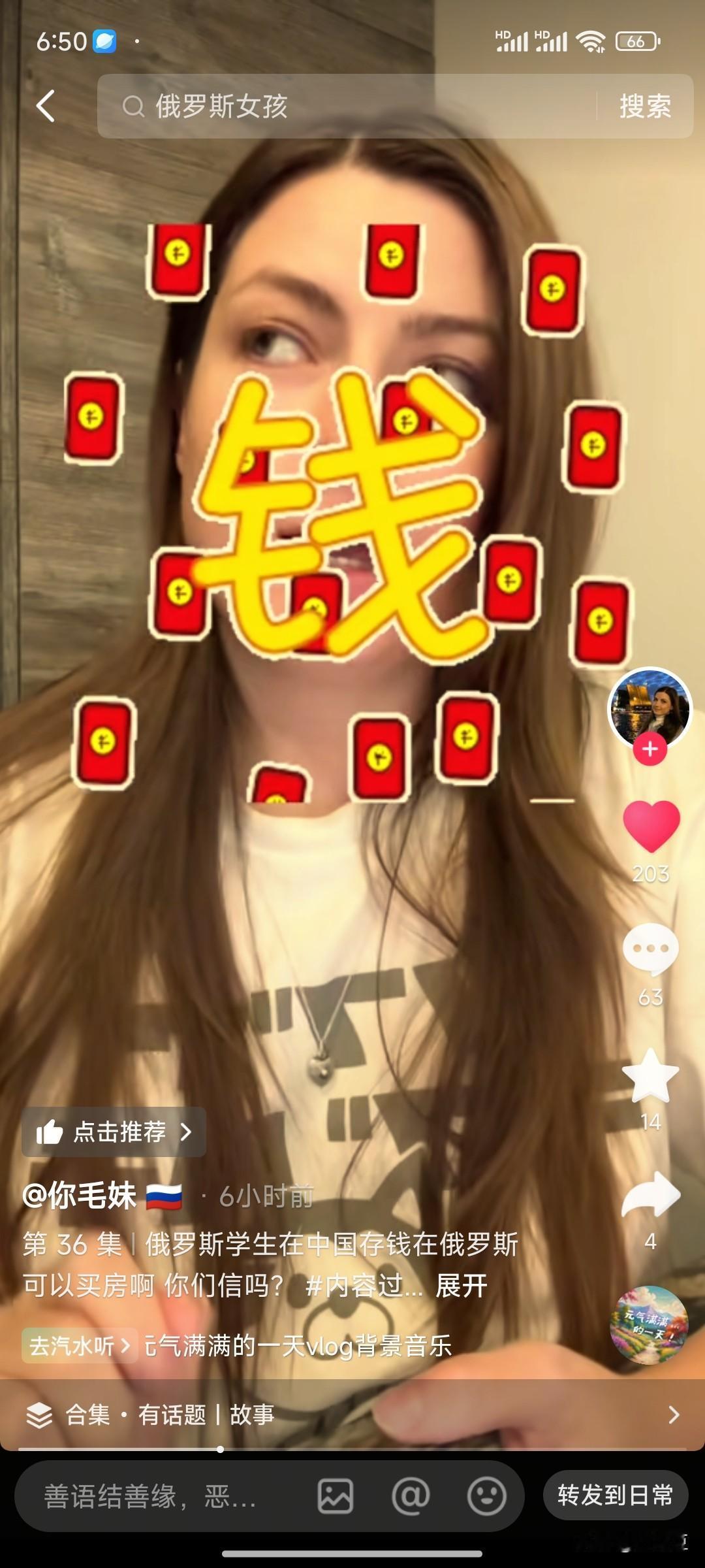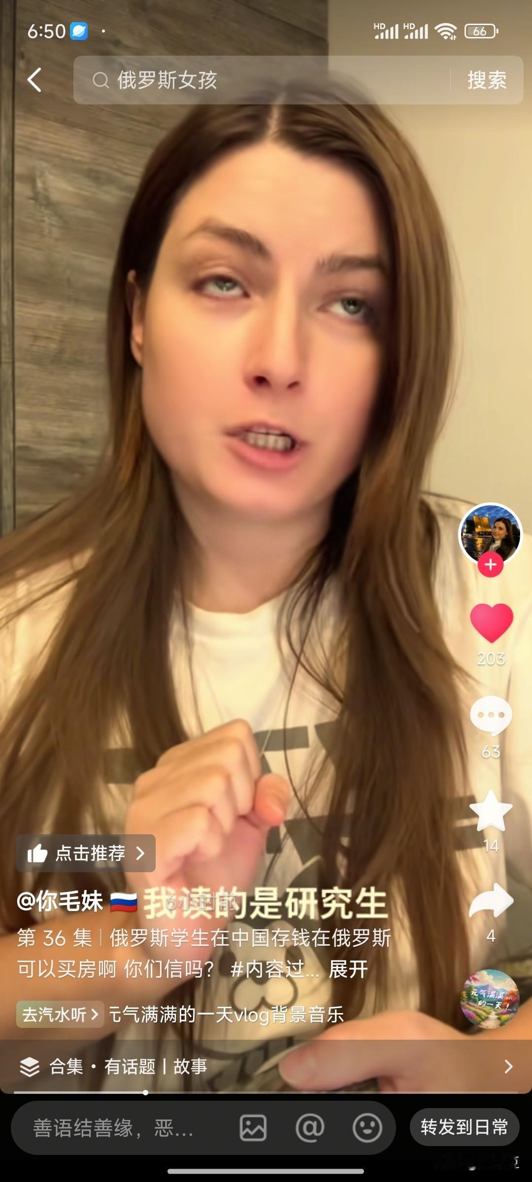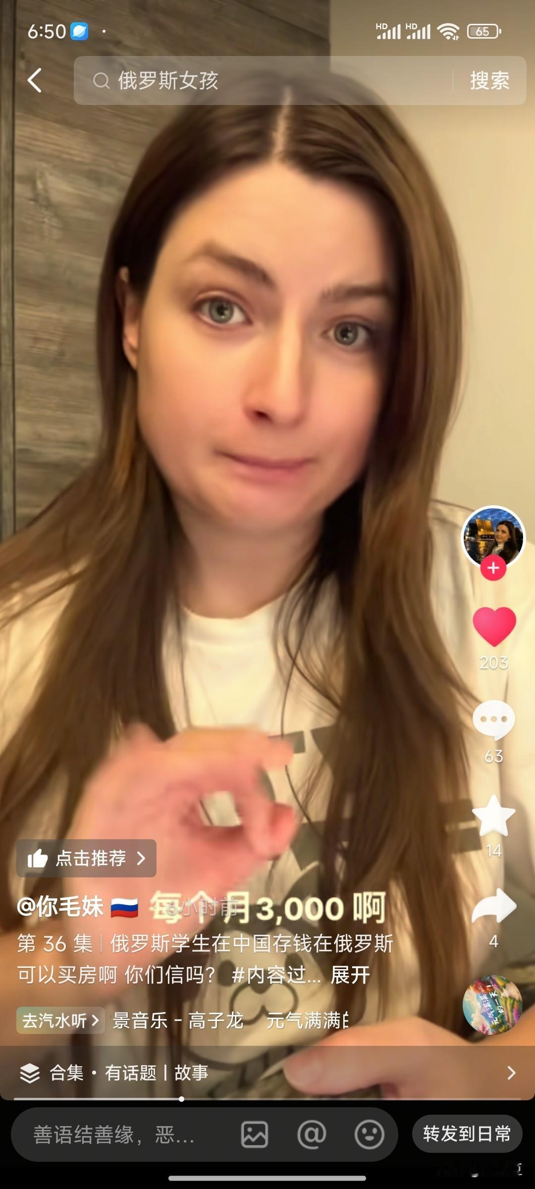 刚从某音上看到一个“你毛妹”的博主谈的事,有点不知所措了,原来传说或者捕风捉影的事总是有影子的! 这位博主俄罗斯来华留学生,目前在从事翻译工作,硕士生。 她说:不要看不起你身边抠门的俄罗斯同学,他在中国读书的时候用奖学金存的钱,在俄罗斯买了房子啊! 她说大部分的俄罗斯留学生都有奖学金,本科是一个月三千,她是硕士,一个月三千五!一年给到手的现钱就三万多,加上住宿费,学杂费等的减免,每个人每年补贴上五万块钱不多吧?算算现在中国有多少留学生? 声明:上述言论为俄罗斯留学生的自述!