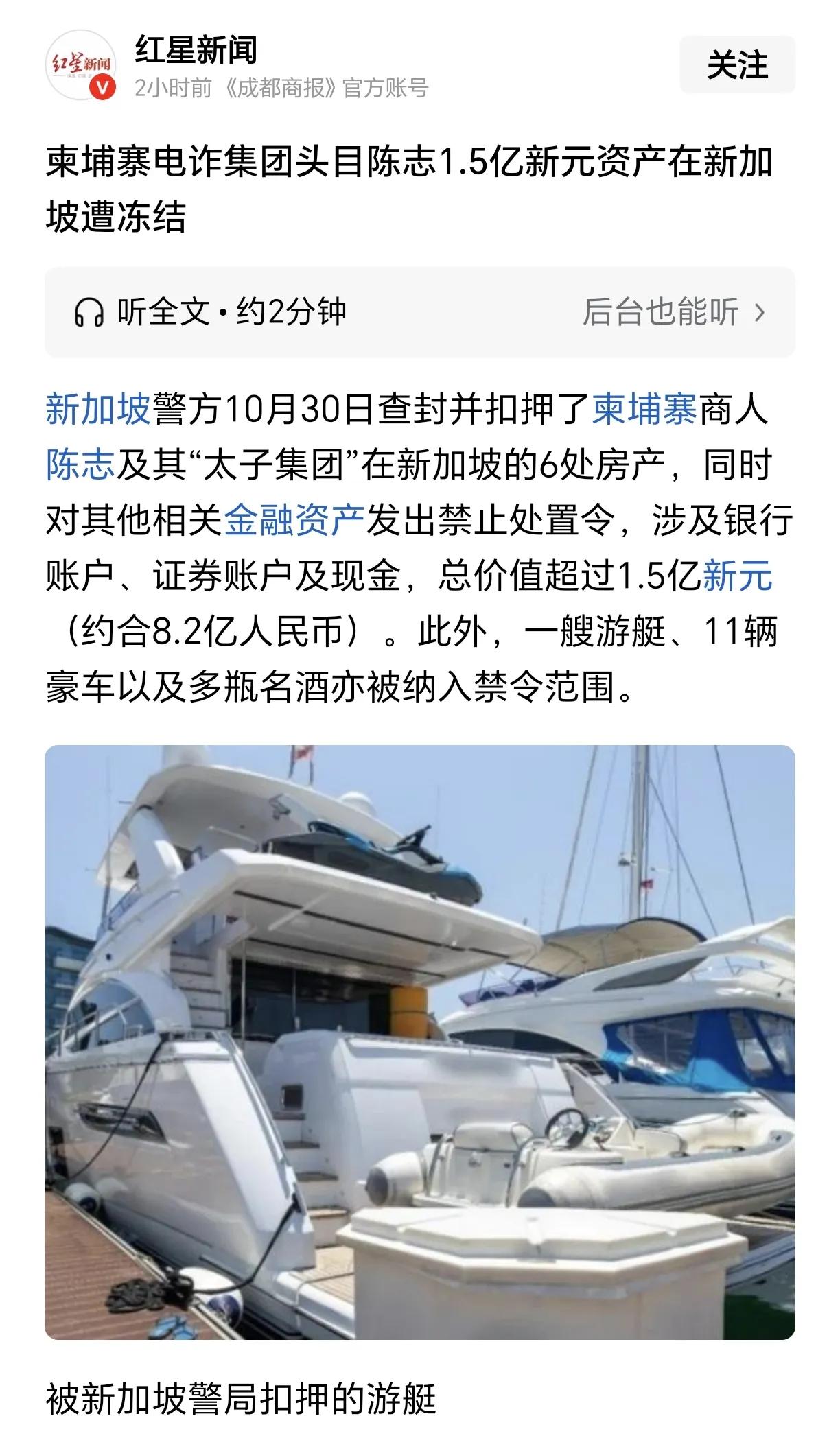 在英美两国后,韩国冻结了太子集团陈志在韩国的资产,现在新加坡也跟上冻结了陈志在新加坡境内的8.2亿人民币财产。 国内就有媒体报道了陈志持有香港两家上市公司的股份,我国目前好像还没有任何冻结查封陈志名下财产的行动,也不知道是什么原因。