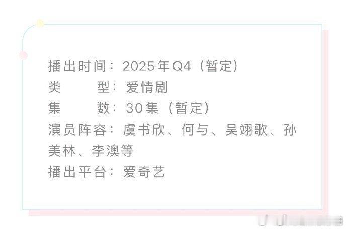 虞书欣《双轨》开启播前招商,预计11月爱奇艺播出,期待值如何?​​​
