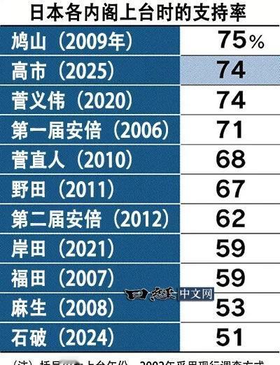 【高市早苗內閣支持率達到74%】日經等的調查顯示,高市早苗內閣的支持率為74%,比石破茂內閣上台時的51%高出20多個百分點,比9月對石破茂內閣實施的最後一次調查上升了37個百分點。不支援高市早苗內閣的比例僅為19%……