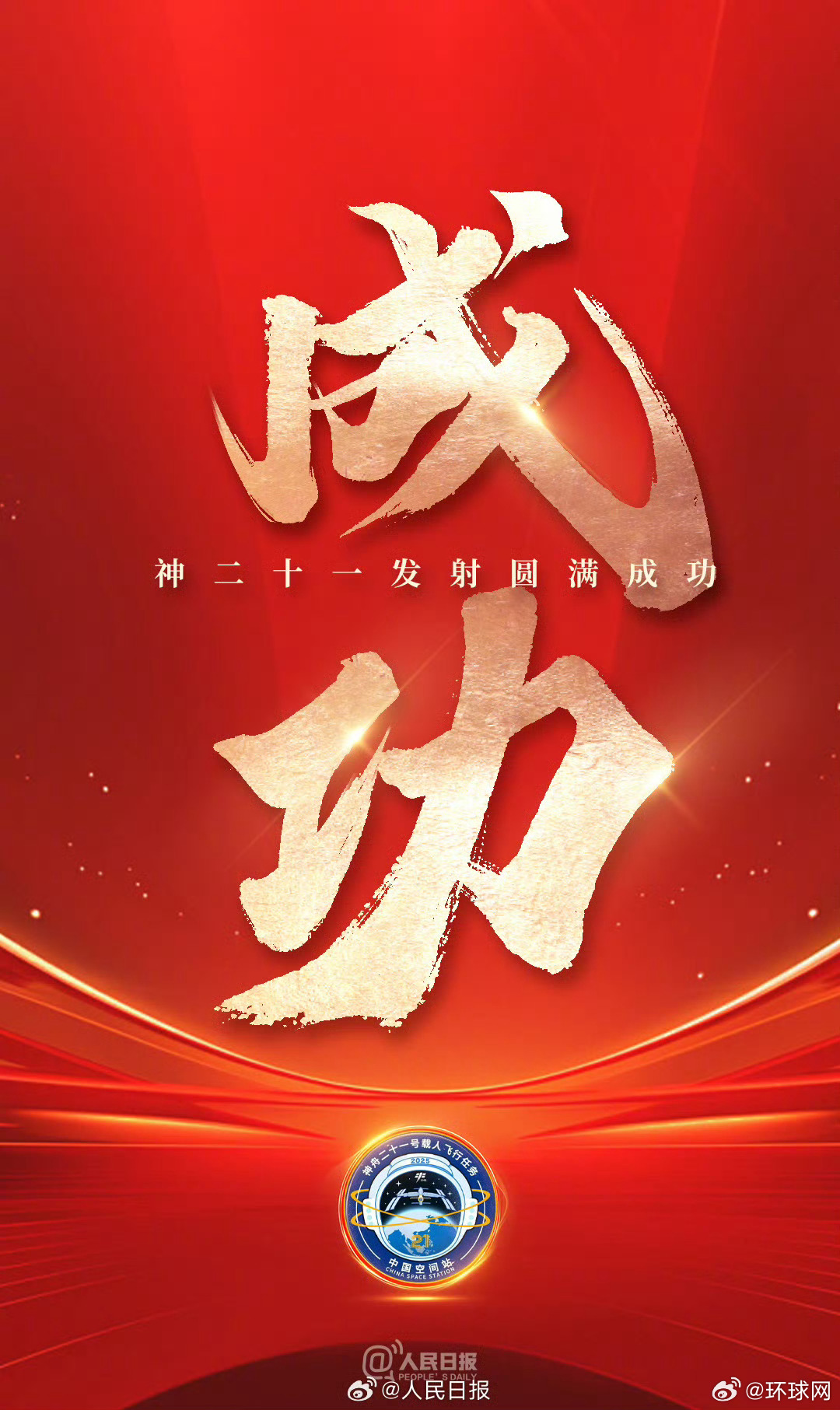 【转发祝贺!#神21发射圆满成功#】#又双叒叕见发射成功大红屏#!祝贺中国航天人!#一人一句祝贺神21发射成功# (人民日报)