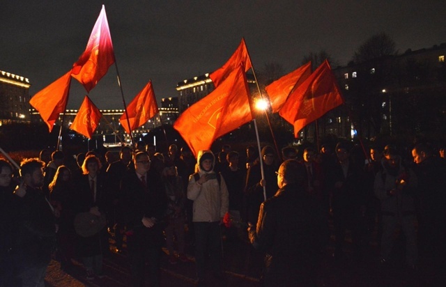 10月29日晚,俄罗斯联邦列宁主义共产主义青年联盟(ЛКСМ РФ)列宁格勒(圣彼得堡)市委及其当地共青团员齐聚共青团英雄纪念碑前,继续开展列宁共青团成立107周年系列纪念活动。