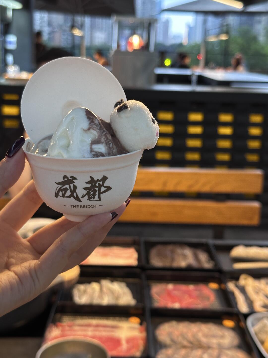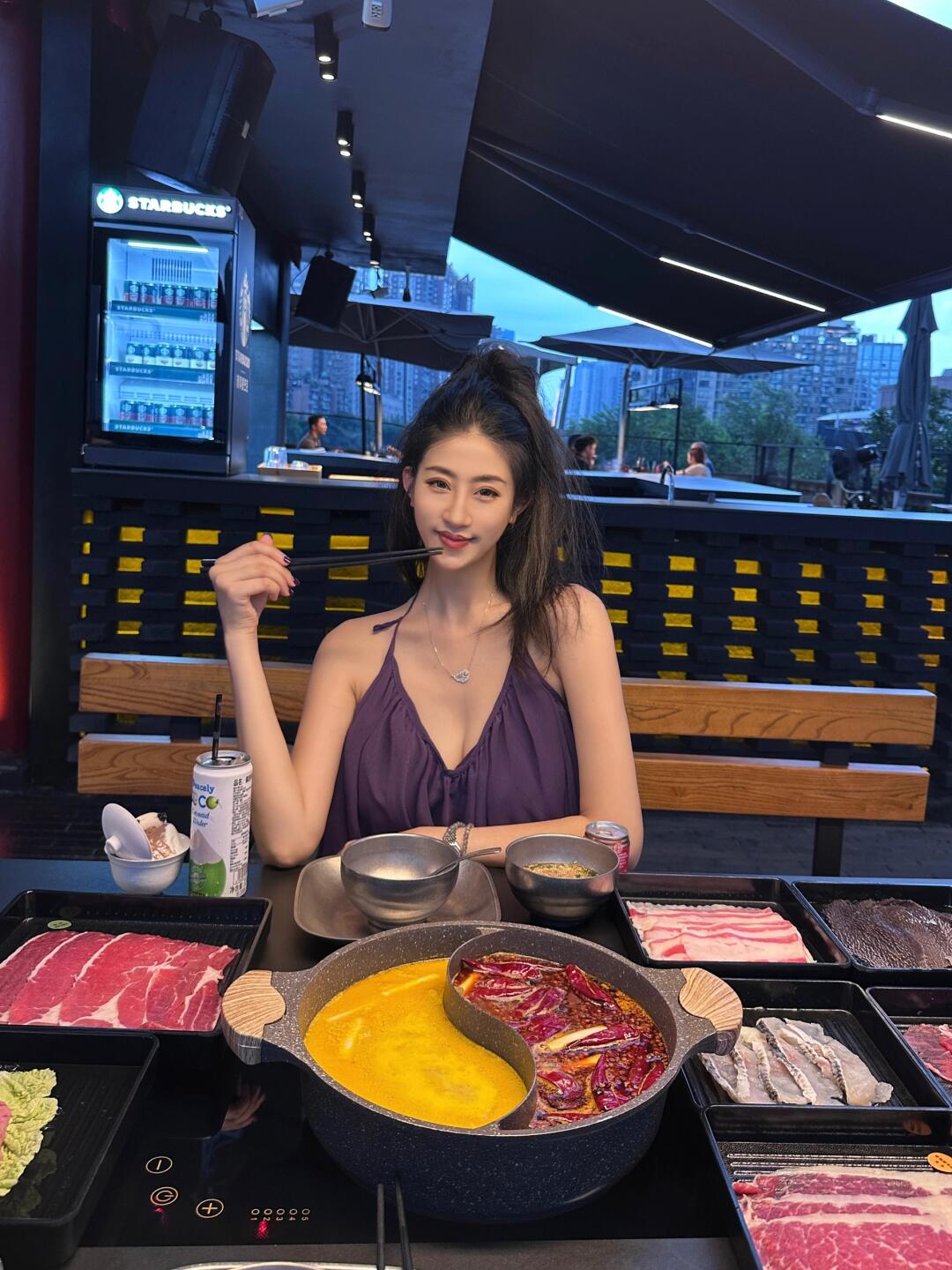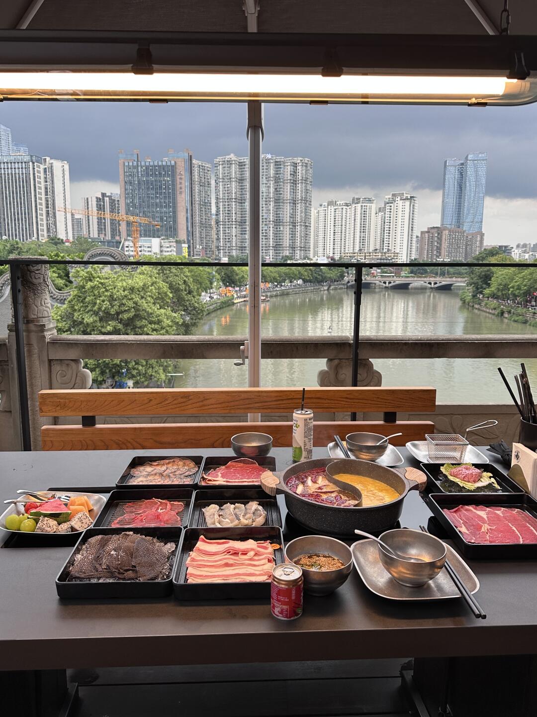 炫漂亮和牛火锅 🍲 无论是华灯初上,还是夜色深沉,这里的view都绝了!看着顶级和牛片在咕嘟咕嘟的锅里变色 香气弥漫在晚风里… 味蕾与视觉的双重盛宴!
