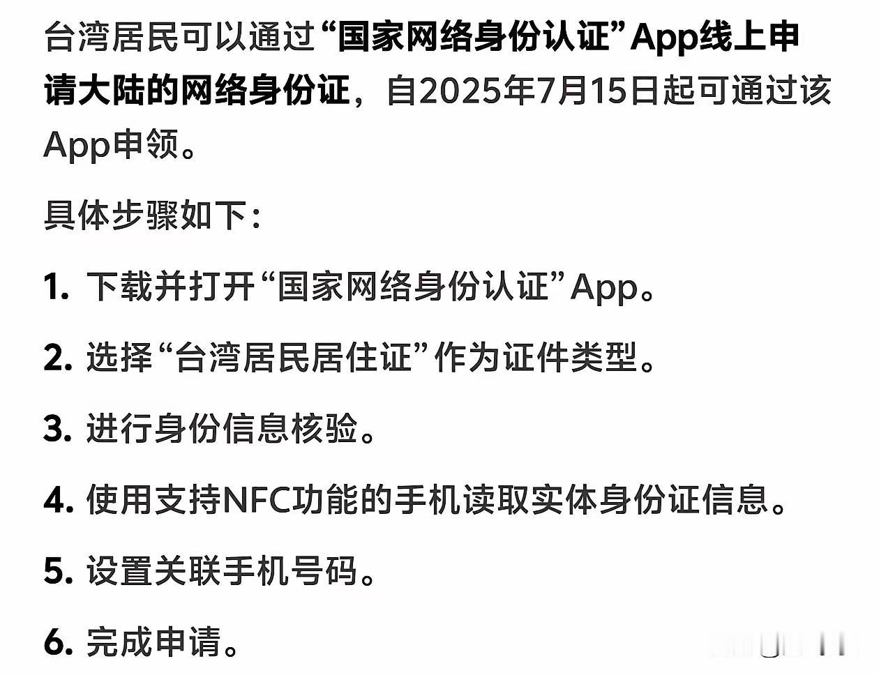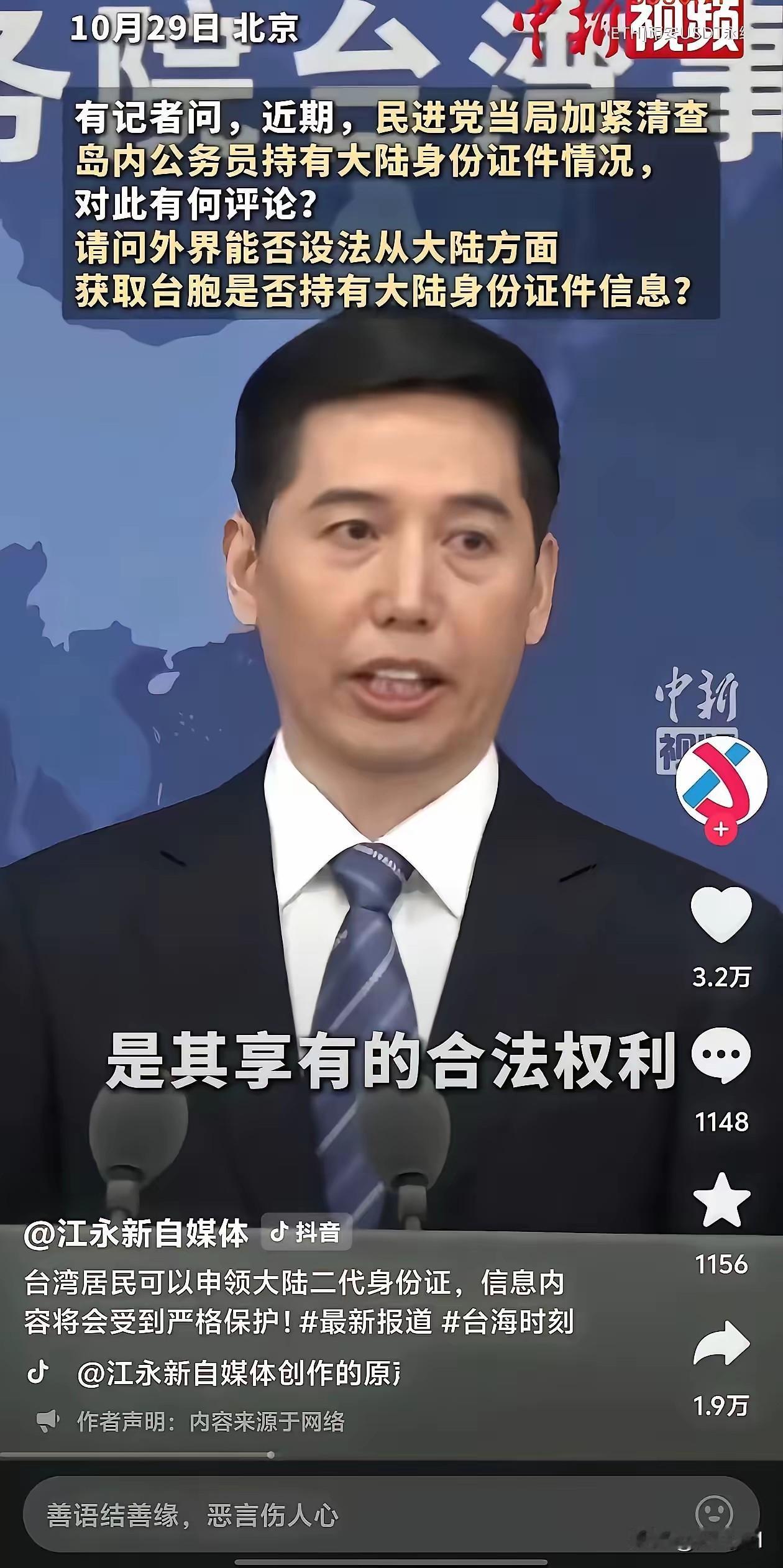 国台办向台湾同胞发通知,台湾地区可以申领网络身份证了,网络身份证是证明谁是台湾地