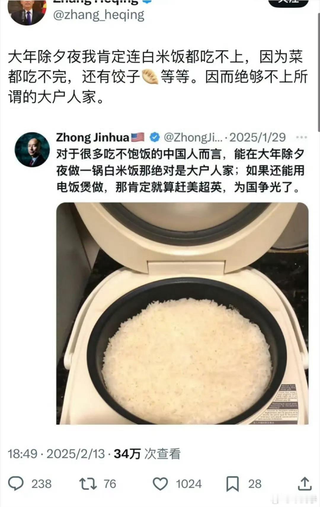 今年正月初一,已经被中国网友遗忘的钟锦化因谣称“在中国,过年能吃上大米饭就是大户人家”(图2),而在中文平台引发极大关注。