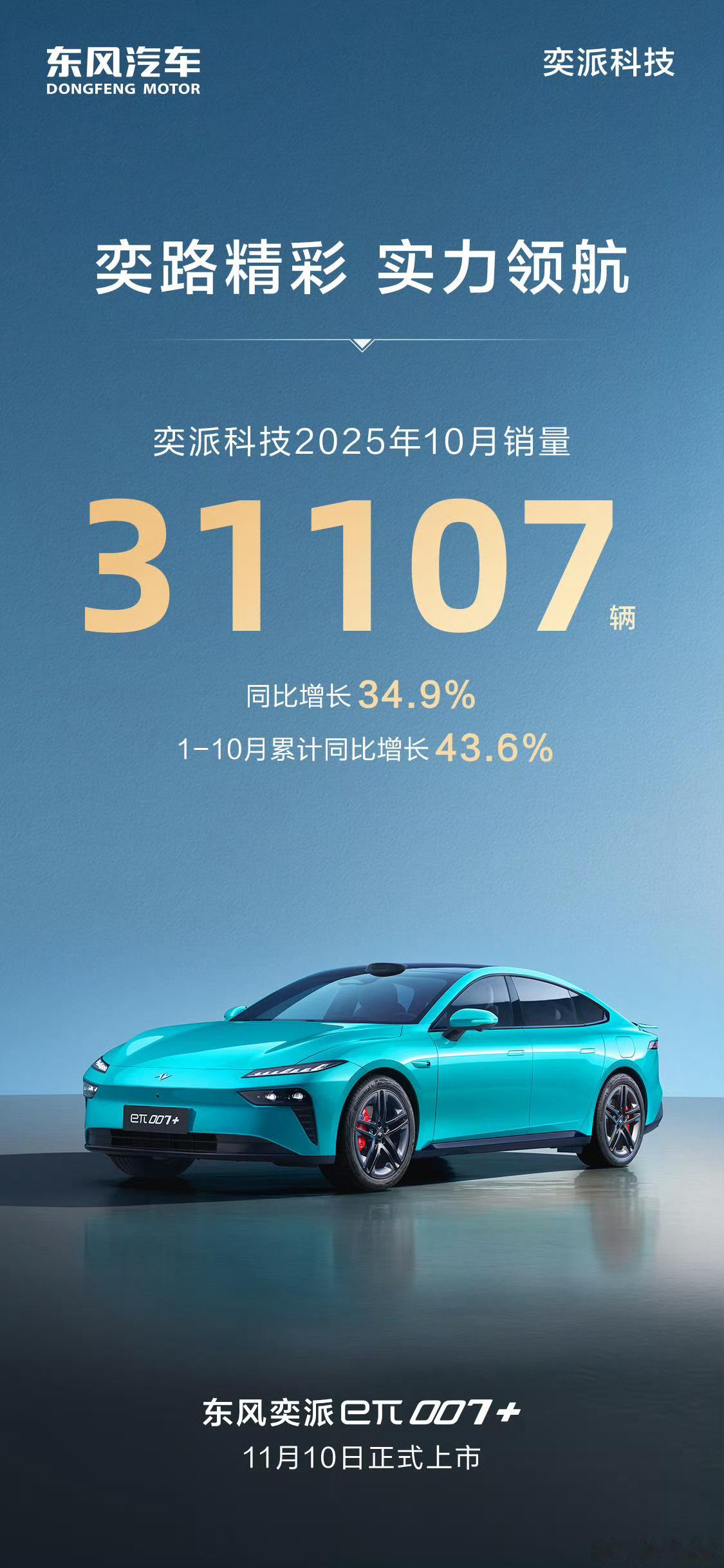 奕派科技10月一共卖出了31107辆,同比上涨34.9%。也是加入了“新势力3万俱乐部”。奕派科技