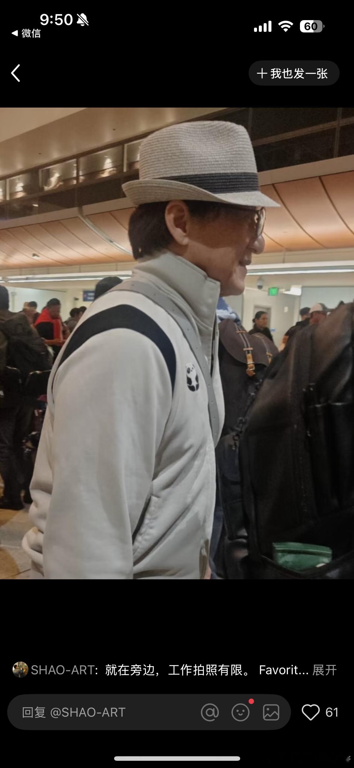 原来成龙刘亦菲这个新合照是网友在机场帮忙拍的📷